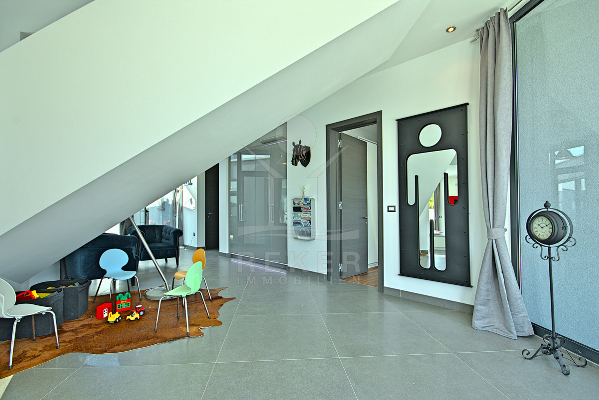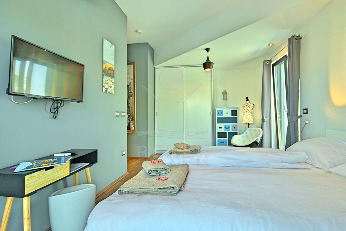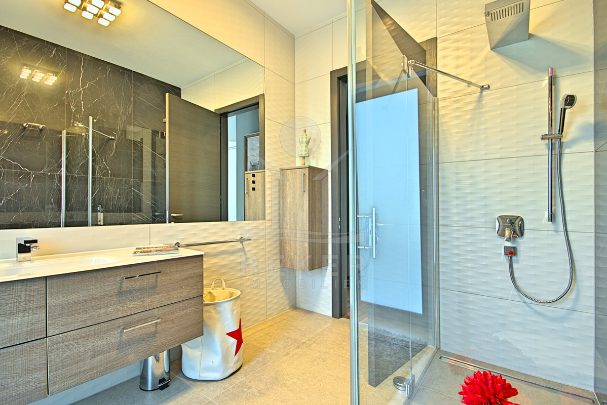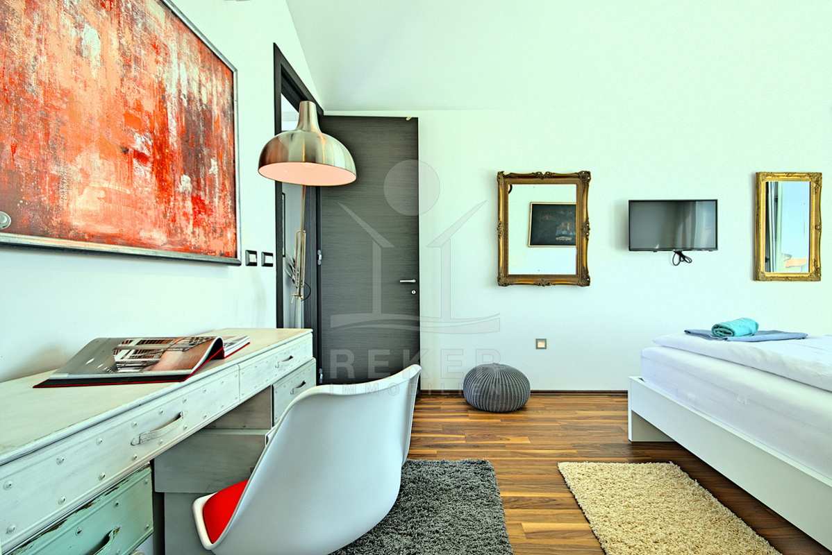 Im Obergeschoss erwarten Sie 3 komfortable Schlafzimmer, jedes mit eigenem Badezimmer, WC. Darüber hinaus haben alle Zimmer Zugang zu einer großzügigen Terrasse, die einen herrlichen Meerblick bietet und perfekten Raum für Sonnenuntergänge oder entspannende Momente im Freien schafft.