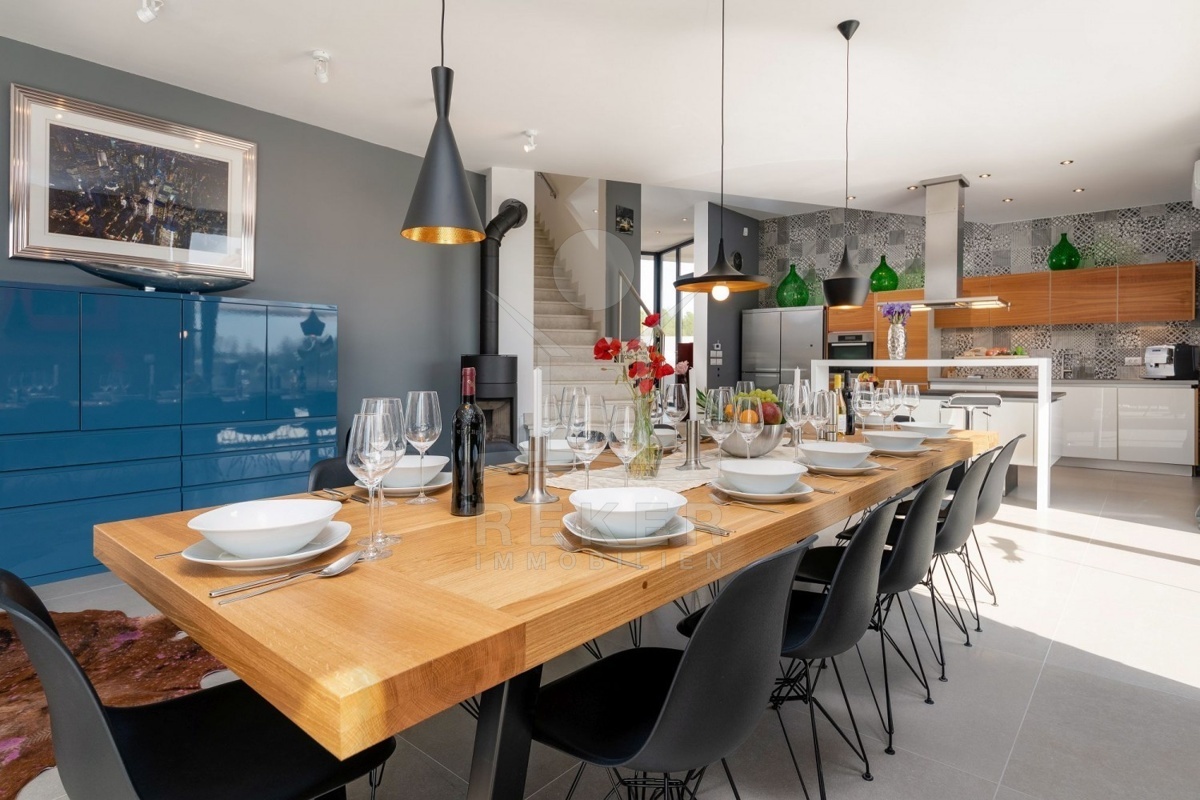 Die Terrasse der Villa ist ein wahres Paradies für Sonnenanbeter und Wasserspaßliebhaber. Sie bietet einen herrlichen Pool von 36 m² mit Liegeplätzen und einer Sonnenterrasse, ideal für entspannte Tage am Wasser. Eine Außendusche sorgt dafür, dass Sie sich nach dem Schwimmen erfrischen können. Der großzügige Außenbereich bietet zahlreiche Möglichkeiten zur frei gestalteten Nutzung – sei es für gesellige Grillabende oder einfach zum Relaxen in der Sonne.