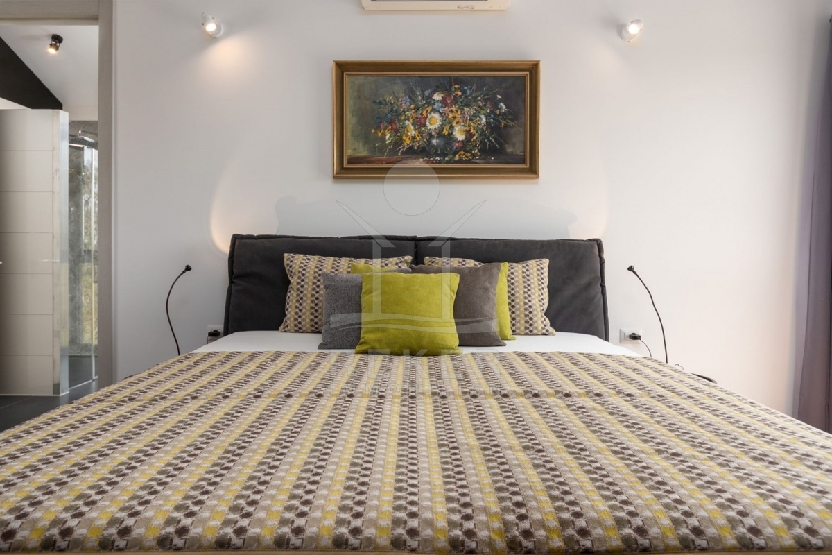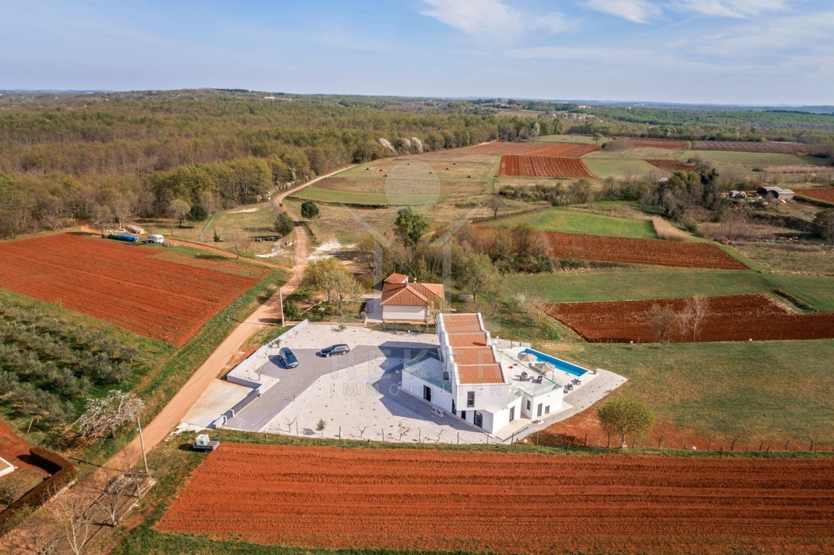 Diese moderne Villa befindet sich in einer äußerst ruhigen Lage, etwa 15 km von Poreč und dem atemberaubenden Meer der Istrischen Küste entfernt. Hier genießen Sie die Stille und Privatsphäre, während Sie gleichzeitig in der Nähe eines der beliebtesten Sommerbadeorte Kroatiens wohnen. Die Küstenabschnitte rund um Poreč bieten zahlreiche Freizeitmöglichkeiten, darunter Campingplätze, Jachthäfen und Strände, die ideal für Wassersportaktivitäten sind und viele Besucher anziehen. Diese Lage ermöglicht es Ihnen, die ruhige Umgebung zu genießen und gleichzeitig alle Annehmlichkeiten und kulturellen Höhepunkte der Region schnell zu erreichen.