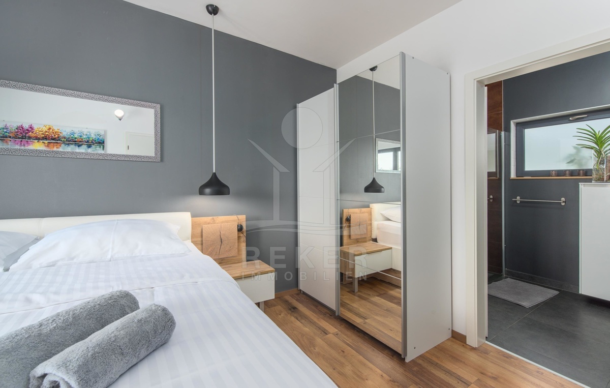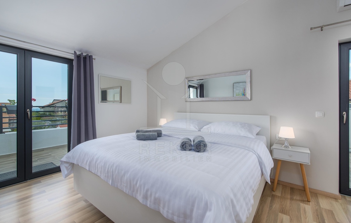 Obergeschoss: 3 Schlafzimmer, 2 Bäder, großzügige Terrasse mit Meerblick