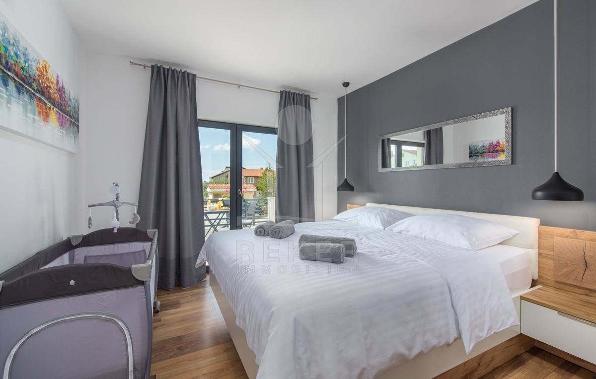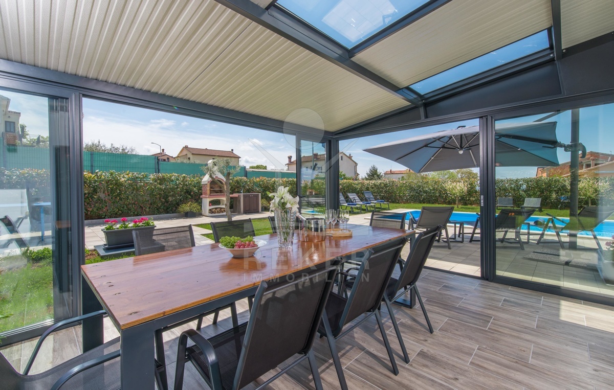 Die Villa liegt in einem malerischen Dorf im idyllischen Hinterland von Istrien und bietet eine perfekte Auszeit inmitten der Natur. Durch die sanften Hügel und das üppige Grün der Landschaft können Sie die Ruhe und den Charme der Landschaft genießen. Poreč, mit seinen historischen Sehenswürdigkeiten, Restaurants und lebhaften Märkten, ist nur etwa 15 km entfernt und leicht zu erreichen.