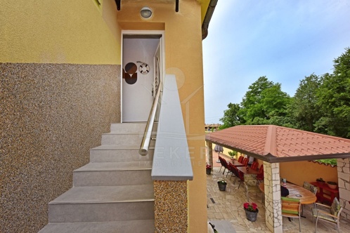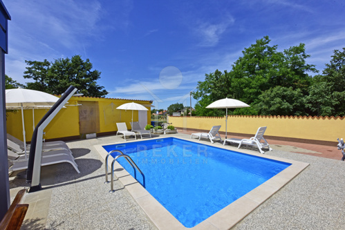 Inmitten einer friedlichen Umgebung gelegen, bietet diese Villa eine perfekte Mischung aus Ruhe und Nähe zu zahlreichen Einrichtungen. Mit dem Meer und Strand nur 5 km entfernt und Geschäften, Cafés, Restaurants und Schulen in unmittelbarer Nähe, ist hier für alles gesorgt. Der Wasserpark Aquacolors und der Fußballplatz sind schnell erreichbar, ebenso wie die Städte Tar und Funtana. Nur 4 km entfernt liegt die Autobahneinfahrt Višnjan und der Flughafen Pula ist 58 km entfernt. Die Nähe zur geomorphologischen Naturdenkmal Höhle Baredine eröffnet weitere Erkundungsmöglichkeiten. Gäste schätzen besonders die fußläufig erreichbaren Cafés, Gaststätten und Geschäfte, die das Erlebnis bereichern. Poreč in der Nähe bietet kulturelle Sehenswürdigkeiten wie die Euphrasia Basilika und ausgezeichnete Strände für Badespaß. Erleben Sie hier die perfekte Kombination aus Ruhe und Aktivitäten in einer paradiesischen Umgebung.