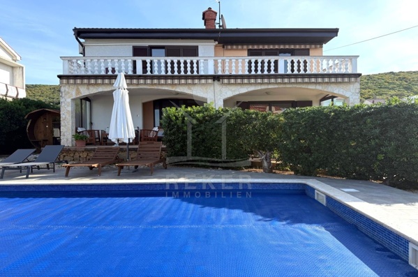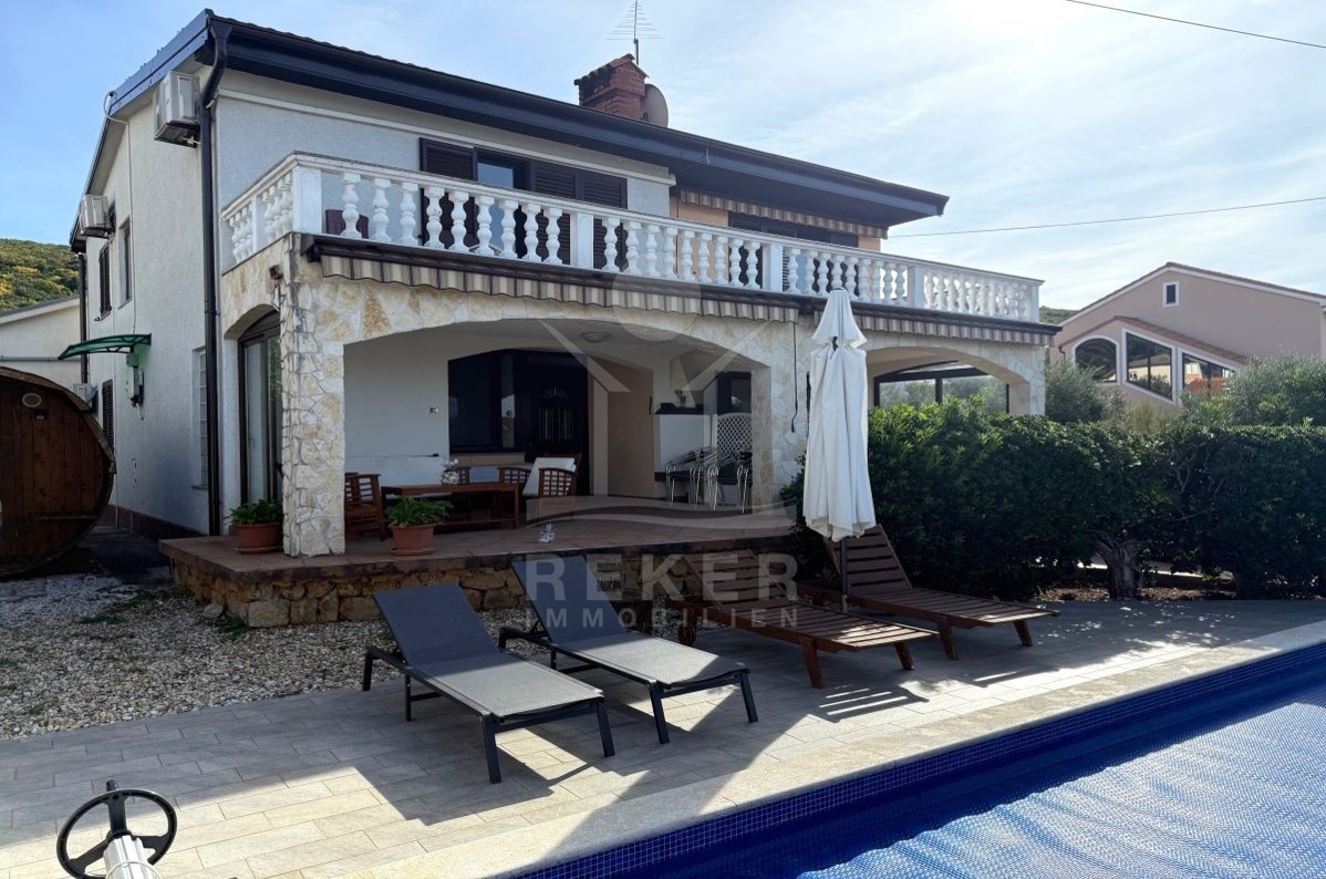 RUHIGE LAGE, VIEL PLATZ: ZWEIFAMILIENVILLA MIT POOL, MEERBLICK UND GARAGE AUF KRK