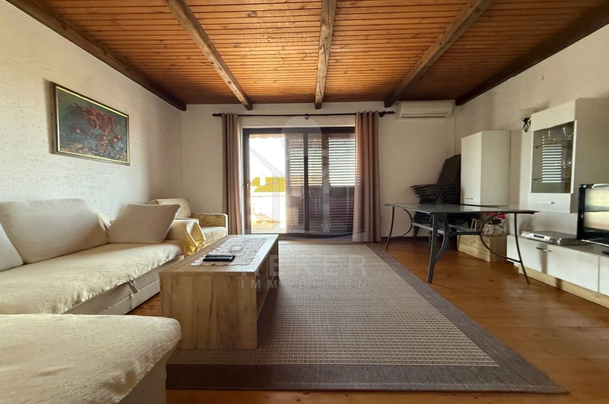In ruhiger Wohnlage von Punat auf der Insel Krk, nur rund 350 Meter vom Meer entfernt, erwartet Sie diese gepflegte freistehende Villa mit zwei eigenständigen Wohneinheiten. Das Ortszentrum erreichen Sie bequem in wenigen Minuten, der Strand ist fast vor der Haustür. Auf dem 827 m² großen Grundstück stehen mehrere Parkplätze und eine Garage bereit.