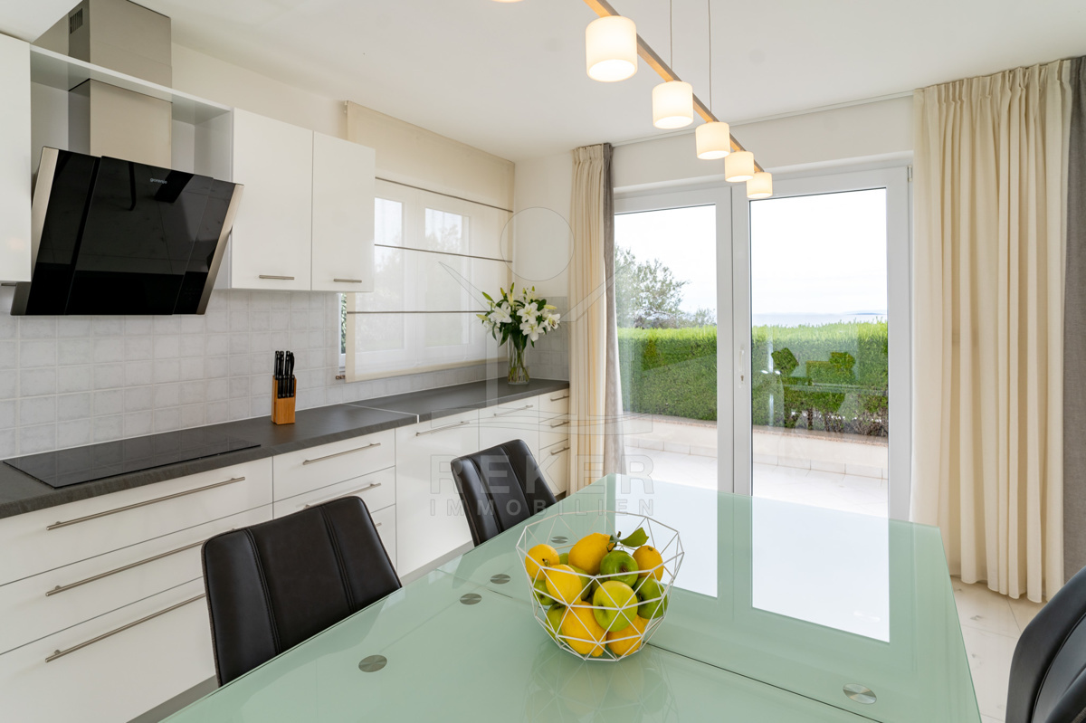 Sprachloses Staunen ist hier garantiert, wenn Sie den überwältigenden Meerblick erleben! Das Erdgeschoss der Luxus-Villa beinhaltet ein Wohnzimmer, ein Badezimmer, eine Küche, ein Esszimmer und das Masterbedroom mit einem en Suite Bad und einem Gäste-WC.