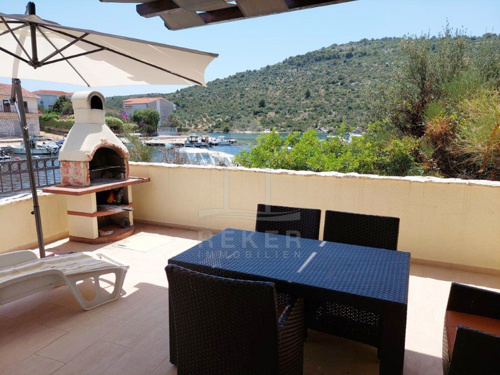 Die Villa befindet sich in erster Reihe am Meer und bietet einen unverbaubaren Panoramablick in einer ruhigen und wunderschönen Umgebung. Nur 10 Meter trennen Sie von einem schönen Strand und einer einladenden Promenade. Der Flughafen Split ist nur 30 km entfernt, was die Anreise sehr bequem macht. Rogoznica, in der Nähe von Primosten und Trogir gelegen, ist ein romantischer Urlaubsort, der vor allem Nautiker und Badeurlauber begeistert. Der moderne Ortsteil auf dem Festland bietet einen einfachen Zugang zum alten Ortskern auf der Insel Kopara, während die Uferpromenade einen herrlichen Blick auf die Marina Frapa bietet. Umgeben von traumhaften Stränden und einsamen Buchten, darunter der familiengerechte Sepurina Strand und abenteuerliche Klippen, lässt die Umgebung von Rogoznica keine Wünsche offen. Genießen Sie dalmatinische Köstlichkeiten in den Restaurants und Konobas der Altstadt und erkunden Sie idyllische Küstenorte wie Stupin Celine, Razanj, Kanica und Sevid. Diese Traumvilla ist eine Kapitalanlage für das Leben und Glück zugleich.