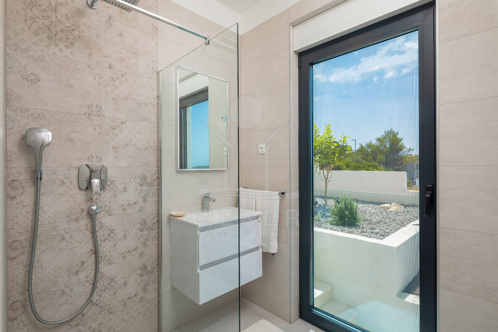 Etwa fünf Kilometer außerhalb von Rogoznica liegt diese moderne Villa in angenehm ruhiger Umgebung – perfekt, wenn Sie Privatsphäre schätzen, aber trotzdem schnell am Wasser oder im Ort sein möchten. Die Nachbarschaft ist gepflegt, entspannt und ideal für Familien oder Urlaubsgäste. Nur 100 Meter trennen Sie vom Meer. Die Aussicht? Postkartenreif – und das von fast überall im Haus.