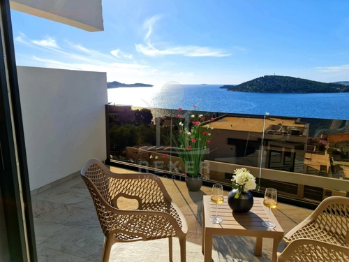Freuen Sie sich schon jetzt auf überwältigende Stunden auf dem Balkon mit magischem Meerblick! Durch einen freien Blick nach Westen können Sie den Sonnenuntergang über dem Meer jeden Abend neu bestaunen.