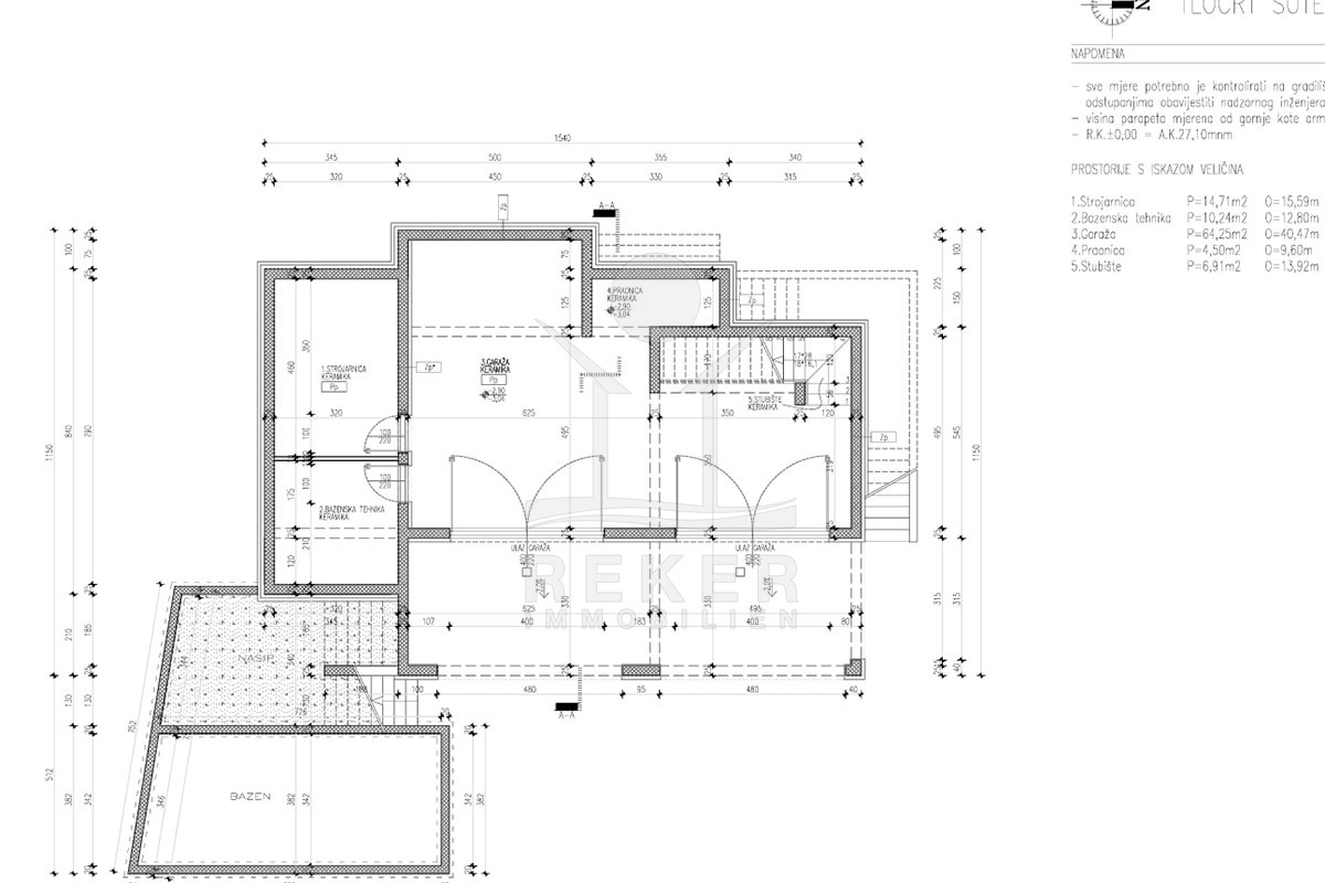 Die Neubauvilla in Rogoznica überzeugt durch ihre erstklassige Lage, nur 90 Meter vom glitzernden Meer entfernt. Sie erstreckt sich über ein großzügiges Grundstück von 560 m² und eine Wohnfläche von 363 m², ist nach Osten ausgerichtet, was atemberaubende Sonnenaufgänge garantiert. Die sanfte Hanglage bietet nicht nur einen herrlichen Meerblick, sondern sorgt auch dafür, dass die Villa optimal ins Grundstück integriert ist. Die erste Etage ist beeindruckend gestaltet und bietet als Garage mit Doppeltüren Platz für bis zu vier Autos. Für zusätzliche Fahrzeuge stehen Ihnen Parkmöglichkeiten sowohl vor als auch hinter dem Grundstück zur Verfügung.