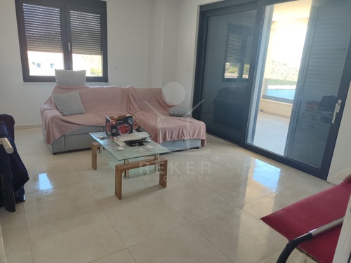 Im Erdgeschoss finden Sie 2 einladende Schlafzimmer, von denen eines über ein eigenes Badezimmer verfügt. Beide Schlafzimmer haben Zugang zur angrenzenden Terrasse, ideal für entspannende Sommerabende. Der offene Wohn- und Essbereich sowie die stilvolle Küche bieten nicht nur ein modernes Ambiente, sondern auch einen spektakulären Blick auf das Meer und die Küste.