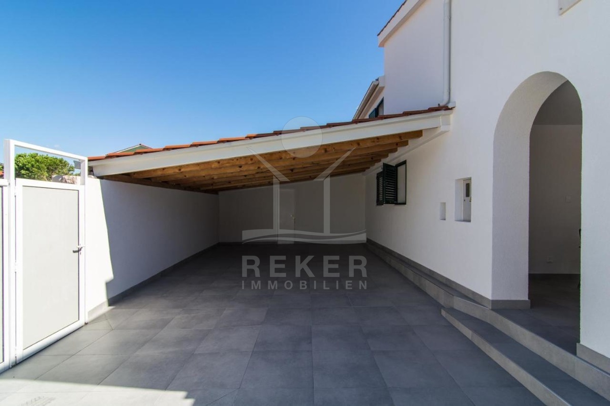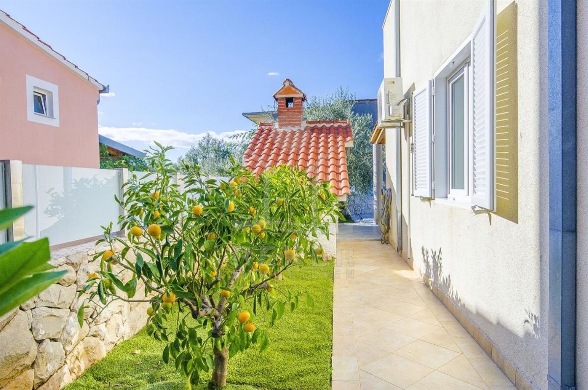 Das Anwesen befindet sich auf einem 360 m² großen Grundstück, das von einer Steinmauer umgeben ist und somit maximale Privatsphäre bietet. Der schön angelegte mediterrane Garten verstärkt das Urlaubsgefühl und lädt zum Entspannen ein. Das Gebäude erstreckt sich über zwei Etagen und bietet eine großzügige Wohnfläche von 108 m².