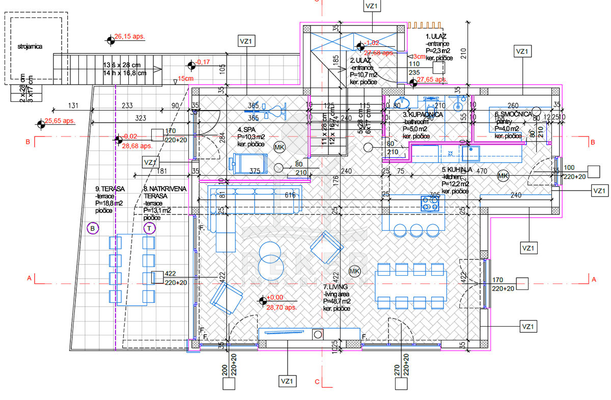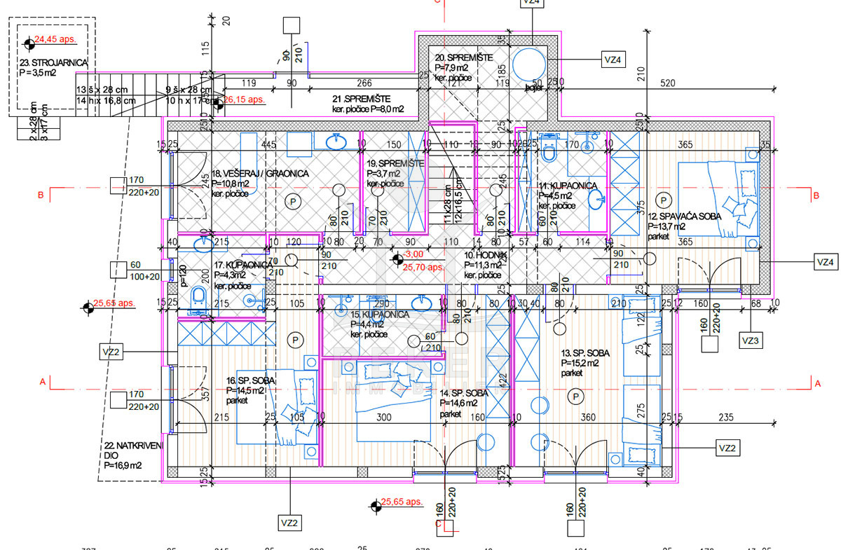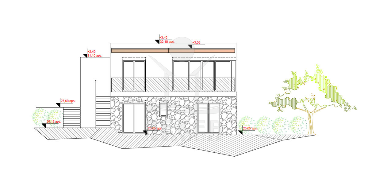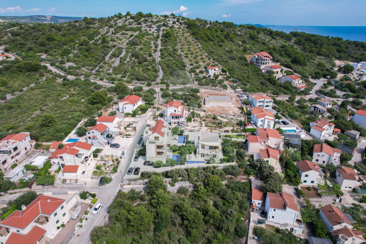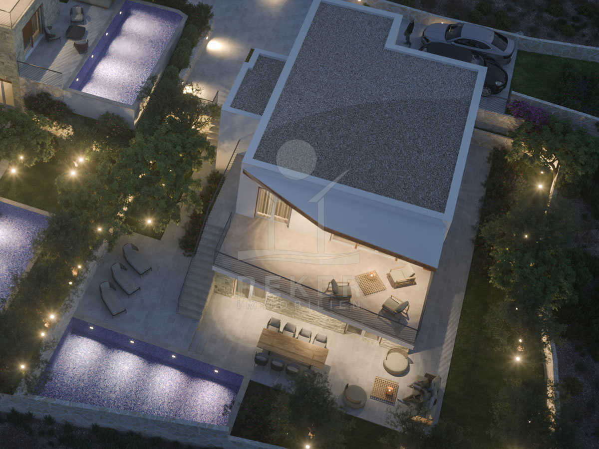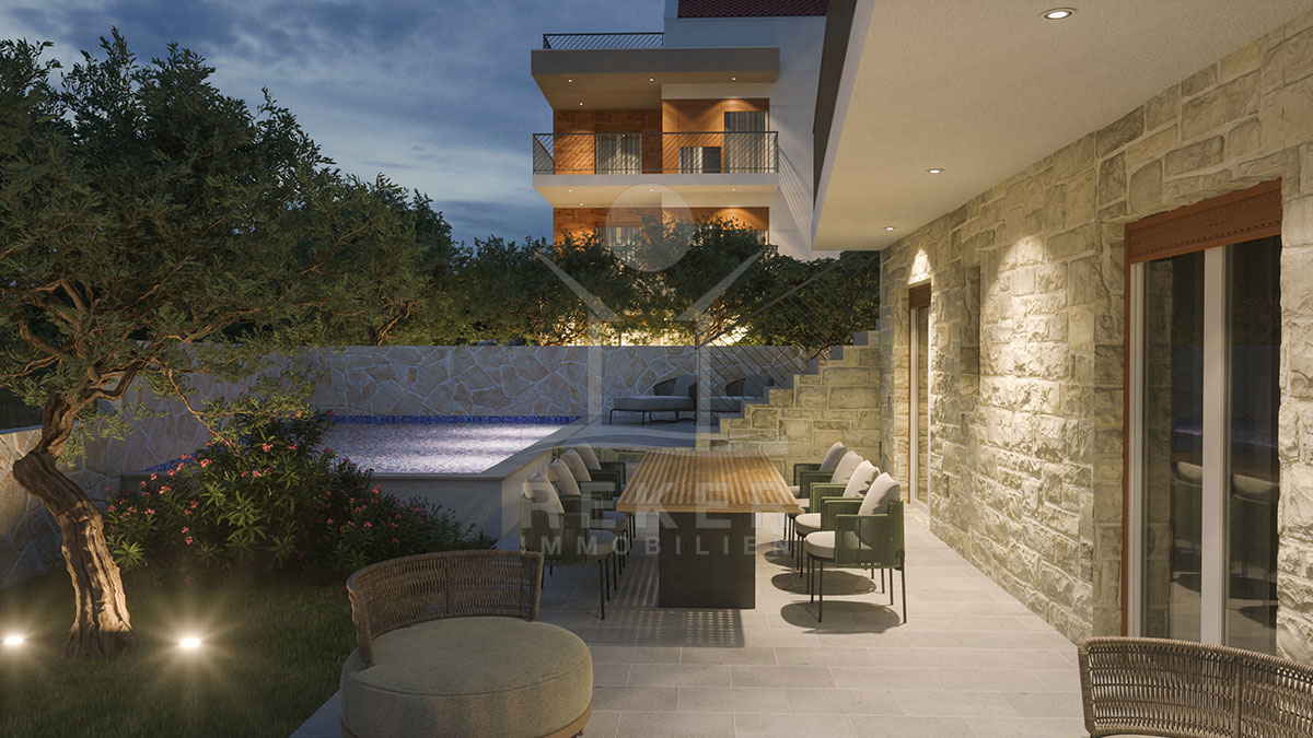 Das Anwesen erstreckt sich über ein großzügiges Grundstück von 698 m² und bietet eine harmonische Kombination aus modernen Annehmlichkeiten und dalmatinischer Architektur. Umgeben von einer eleganten Steinmauer, beherbergt das Anwesen eine wunderschöne Liegewiese und einen mit dalmatinischen Pflanzen bepflanzten Garten, der ein Gefühl von Ruhe und Privatsphäre vermittelt. Das frei stehende Gebäude mit 195 m² Wohnfläche verteilt sich auf 2 Etagen und wird im Jahr 2025 fertiggestellt, sodass Sie in ein echtes Traumhaus einziehen können. Zudem sind zwei Parkplätze vorgesehen, die den Komfort eines luxuriösen Lebensstils gewährleisten.