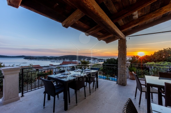 Die exklusive Luxusvilla liegt in Rogoznica, zwischen Primosten und Trogir an der malerischen Westküste Dalmatiens. Nur 160 Meter vom Meer entfernt, können Sie die ruhige Atmosphäre und die unberührte Natur der Region in vollen Zügen genießen. Das Zentrum von Rogoznica mit seinen gemütlichen Restaurants und Yachthäfen erreichen Sie bequem in nur 600 Metern. Das einstige Fischerdorf hat sich zu einem beliebten Urlaubsparadies entwickelt, das mit seinen Stränden, Buchten und Klippen für Badegäste und Abenteurer gleichermaßen interessant ist. Die umliegenden Siedlungen wie Stupin Celine, Razanj, Kanica und Sevid bieten weitere reizvolle Ziele für Erkundungstouren. Abends laden die Restaurants und Konobas der Altstadt zu kulinarischen Genüssen der dalmatinischen Küche ein, bevor Sie den Tag mit einem romantischen Spaziergang entlang der Uferpromenade oder im aufregenden Nachtleben ausklingen lassen können. Mit der Villa in Rogoznica erwartet Sie ein luxuriöses Domizil in einer idyllischen Umgebung, das pure Entspannung und unvergessliche Urlaubsmomente verspricht.