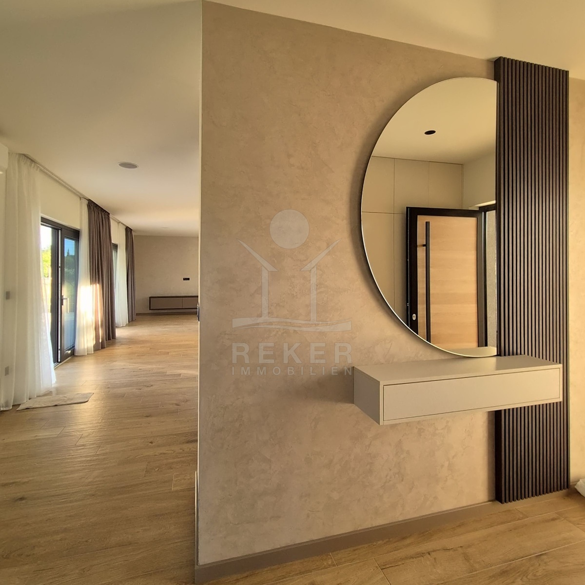 Die beeindruckende Villa befindet sich in der Nähe des malerischen Rovinj, das an der Westküste der Region Istrien liegt. Umgeben von einer traumhaften Landschaft und nur 11 km vom Meer und den wunderbaren Stränden entfernt, bietet diese Lage die perfekte Balance zwischen Ruhe und Nähe zur Urbanität. Die charmante Stadt Rovinj ist bekannt für ihre pulsierende Uferpromenade und die romantische Altstadt, wo Sie das venezianische Erbe der Stadt hautnah erleben können – all dies ist nur 10 km entfernt. Die erstklassigen Dienstleistungen, wie Geschäfte, Cafés, Bars sowie Schulen befinden sich lediglich 5 km entfernt, wodurch die Villa nicht nur für Urlaubsaufenthalte, sondern auch für dauerhaftes Wohnen ideal geeignet ist. Für sportliche Aktivitäten und Unterhaltung stehen ebenfalls ein Fußballplatz und andere Freizeitmöglichkeiten in der Nähe zur Verfügung. Die Autobahneinfahrt ist nur 2 km entfernt, was Ihnen eine bequeme Anbindung an die Region bietet. Entdecken Sie die faszinierenden Sehenswürdigkeiten in der Umgebung, wie die verlassene mittelalterliche Ruinenstadt Dvigrad, die nur 8 km von Ihrer neuen Villa entfernt liegt. Hier erleben Sie die Kulturschätze und die atemberaubende Natur Istriens, während Sie in einer der beliebtesten Urlaubsregionen Kroatiens wohnen. Genießen Sie die Vorzüge dieser ruhigen Lage und ergründen Sie gleichzeitig das aufregende Leben in Rovinj. Hier können Sie "La Dolce Vita" in seiner vollen Pracht erleben.