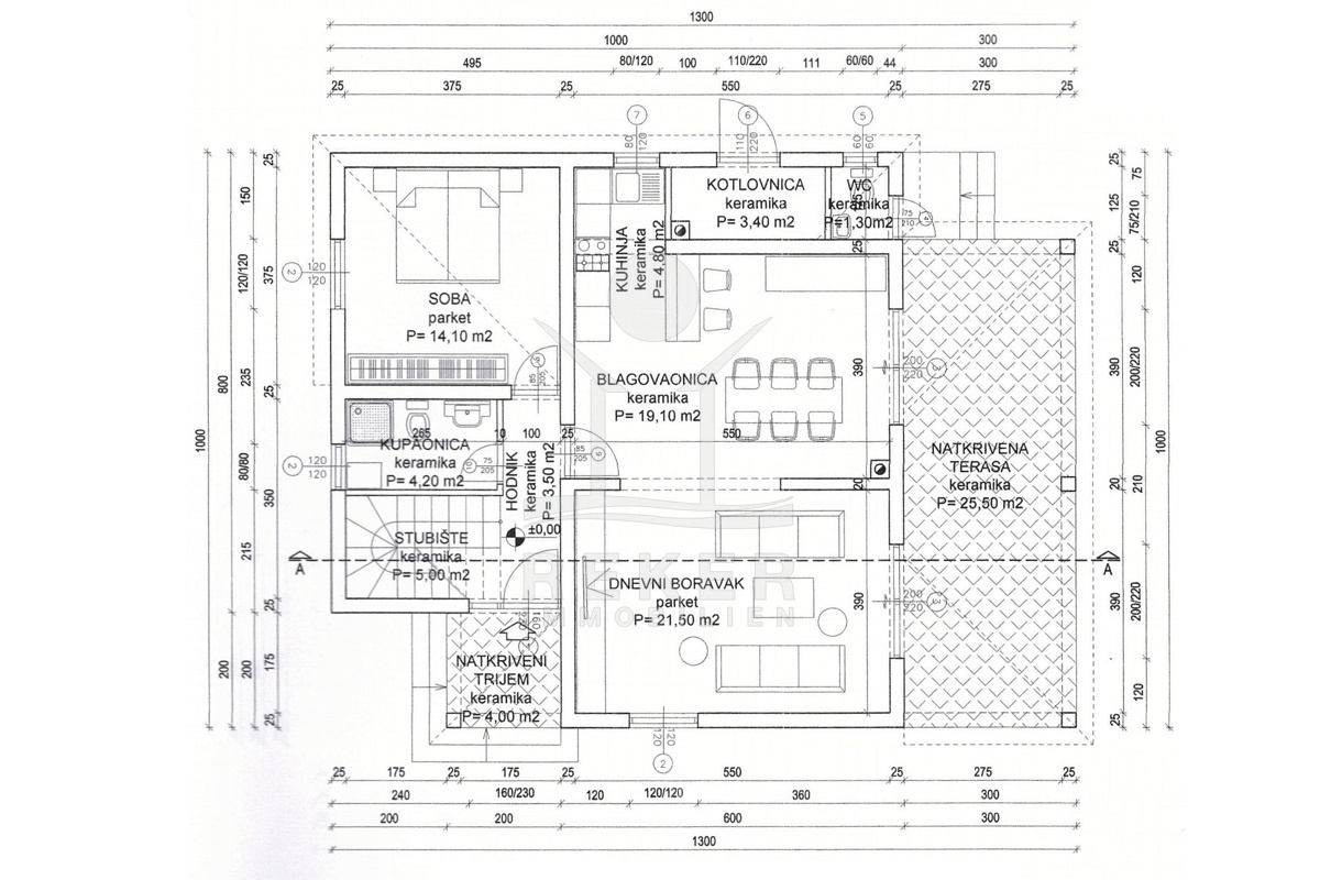 Die schöne Villa wird vollständig möbliert verkauft und ist klimatisiert. Der Eingang befindet sich im Erdgeschoss, das mit einer großzügigen Fläche von 92 m² aufwartet. Hier finden Sie ein einladendes Wohnzimmer mit offener Küche und Essbereich, ein Schlafzimmer, ein Badezimmer, ein separates WC, einen Flur sowie einen Heizungsraum. Zusätzlich laden zwei überdachte Terrassen zum Entspannen im Freien ein.