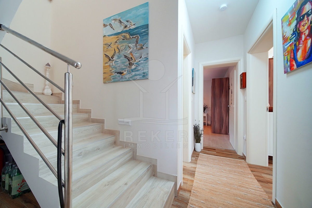 Diese attraktive Villa erstreckt sich über ein großzügiges Grundstück von 603 m² und überrascht mit einer Vielzahl an hochwertigen Ausstattungsmerkmalen. Die Außenanlagen sind mit automatischer Bewässerung, Außenbeleuchtung und schützenden Zäunen, darunter eine elegante Kirschlorbeerhecke und eine Mauer mit Paneelzaun, ausgestattet. Der Zugang zum Grundstück erfolgt über eine motorisierte Metalltür mit Schiebeöffnung, während der Eingang für Fußgänger durch eine separate Metalltür gesichert ist. Das 2-geschossige Gebäude, erbaut im Jahr 2018, überzeugt mit einer umfassenden Ausstattung, darunter Videoüberwachung, moderne Sanitäreinrichtungen und maßgefertigte PVC-Fenster mit Doppelverglasung, die optimalen Schallschutz und Energieeffizienz bieten.