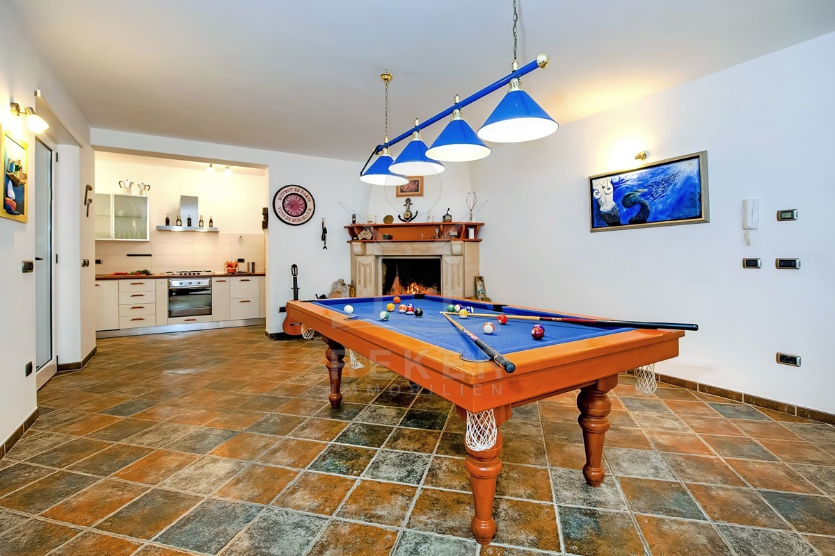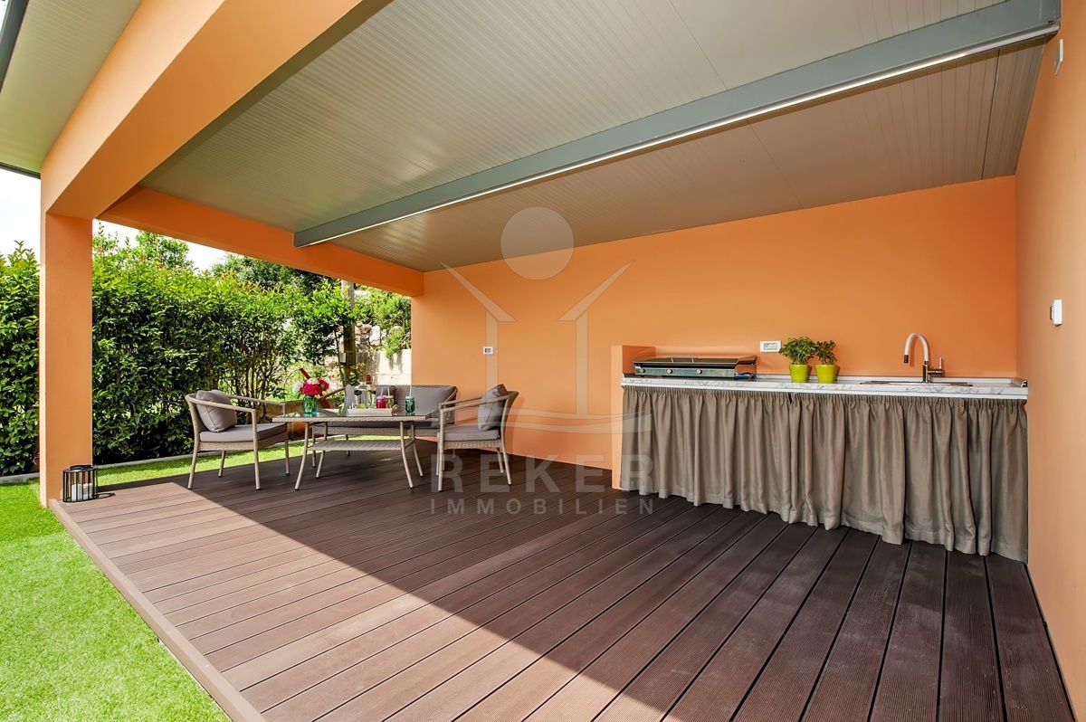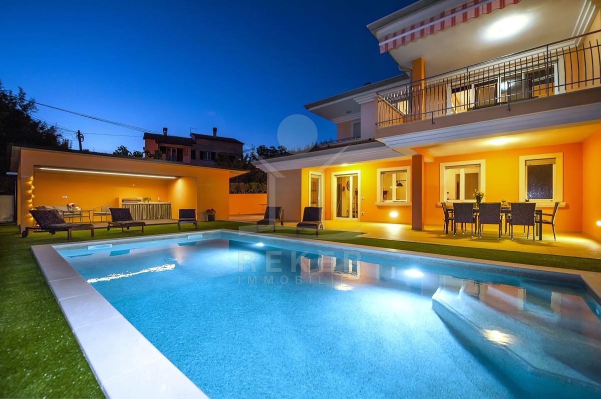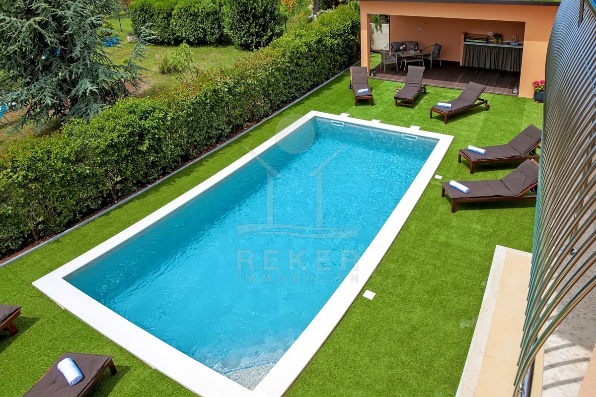 Die Luxusvilla mit zwei separaten Wohnungen liegt in einem ruhigen Dorf in der Nähe von Rovinj und bietet eine perfekte Kombination aus ländlicher Idylle und städtischem Komfort. Mit dem Meer und den Stränden nur 7 km entfernt, können Sie sowohl die Natur als auch die Annehmlichkeiten der Stadt genießen. Zahlreiche Einrichtungen wie Geschäfte, Cafés, Restaurants, Schulen und sogar ein Krankenhaus sind in unmittelbarer Nähe und sorgen für eine bequeme Lebensweise. Die Umgebung bietet vielfältige Freizeitmöglichkeiten, darunter Sportplätze, ein öffentliches Schwimmbad und der malerische Waldpark Punta Corrente. Dank der zentralen Lage sind auch andere Städte wie Kanfanar und Bale sowie Sehenswürdigkeiten wie die mittelalterliche Ruinenstadt Dvigrad gut erreichbar. Tauchen Sie ein in die Schönheit Kroatiens und erleben Sie unvergessliche Abenteuer und Entdeckungen.