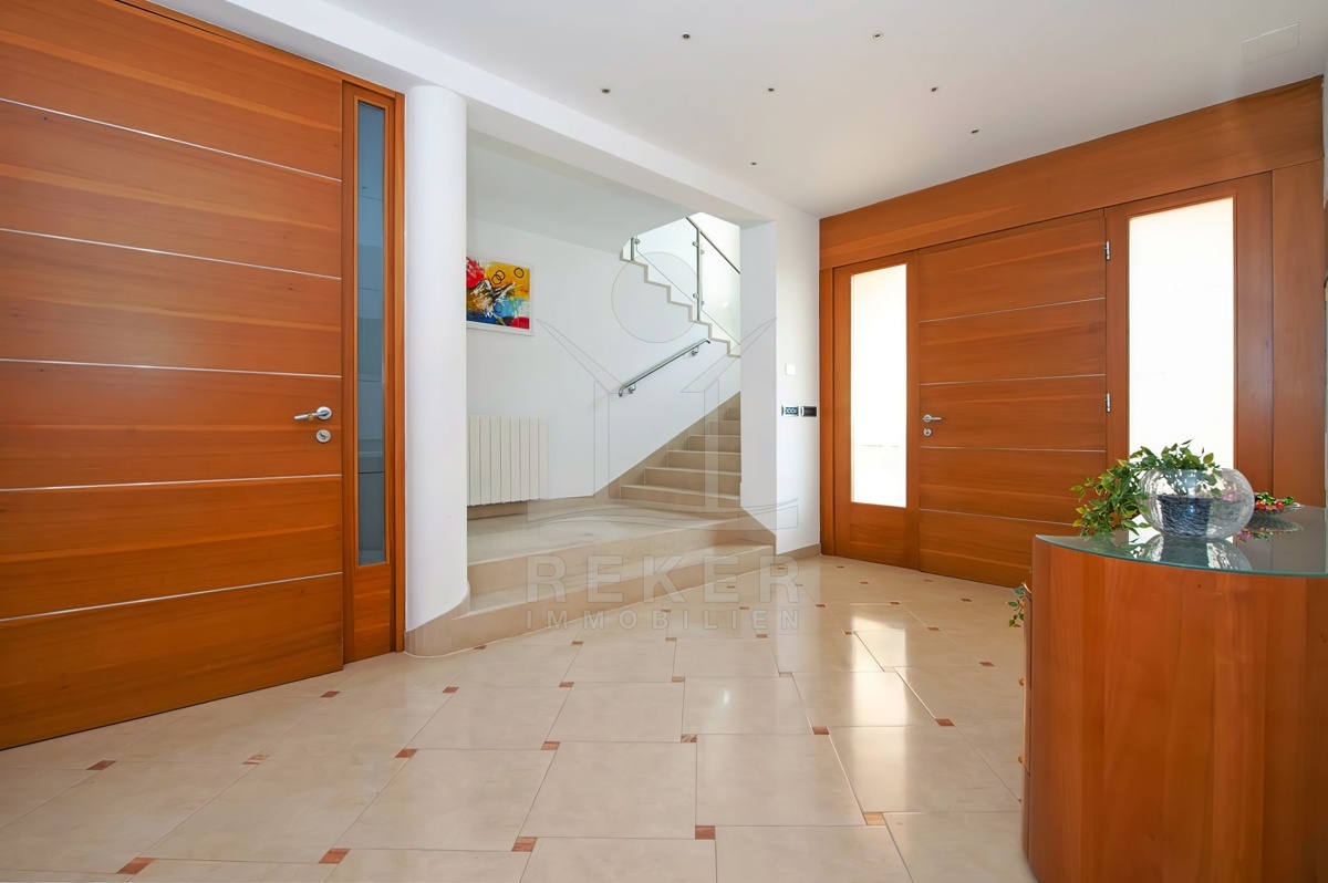 Die Villa thront auf einem Grundstück von über 1.700 m² im sonnenverwöhnten Südwesten. Das Anwesen besticht durch gepflegte Rasenflächen, grüne Hecken und hochwertige Ausstattungsdetails wie automatische Bewässerungssysteme und hochwertige Zäune. Die Villa selbst umfasst 550 m² auf zwei Etagen, erbaut im Jahr 2005. Mit modernster Ausstattung, exquisiten Materialien und hochwertigen Oberflächen setzt diese Immobilie neue Maßstäbe. Eine Garage und ausreichend Parkplätze stehen zur Verfügung, um Ihren Komfort zu maximieren und Ihnen sorgenfreie Parkmöglichkeiten zu bieten. Willkommen in Ihrem luxuriösen Refugium!