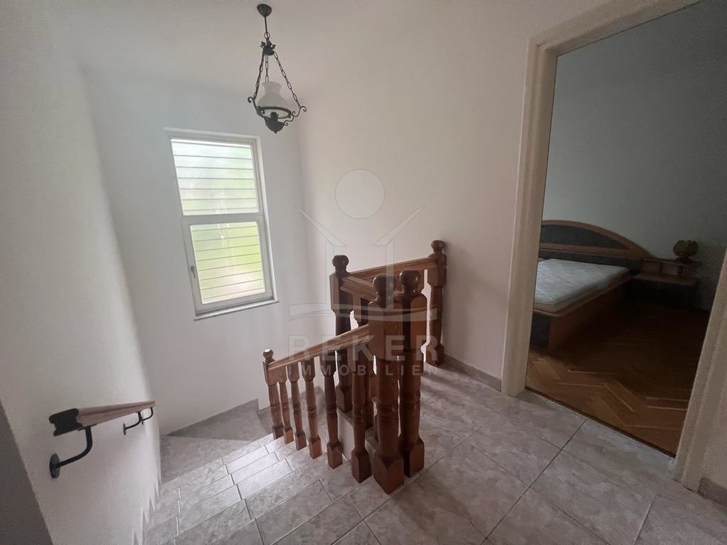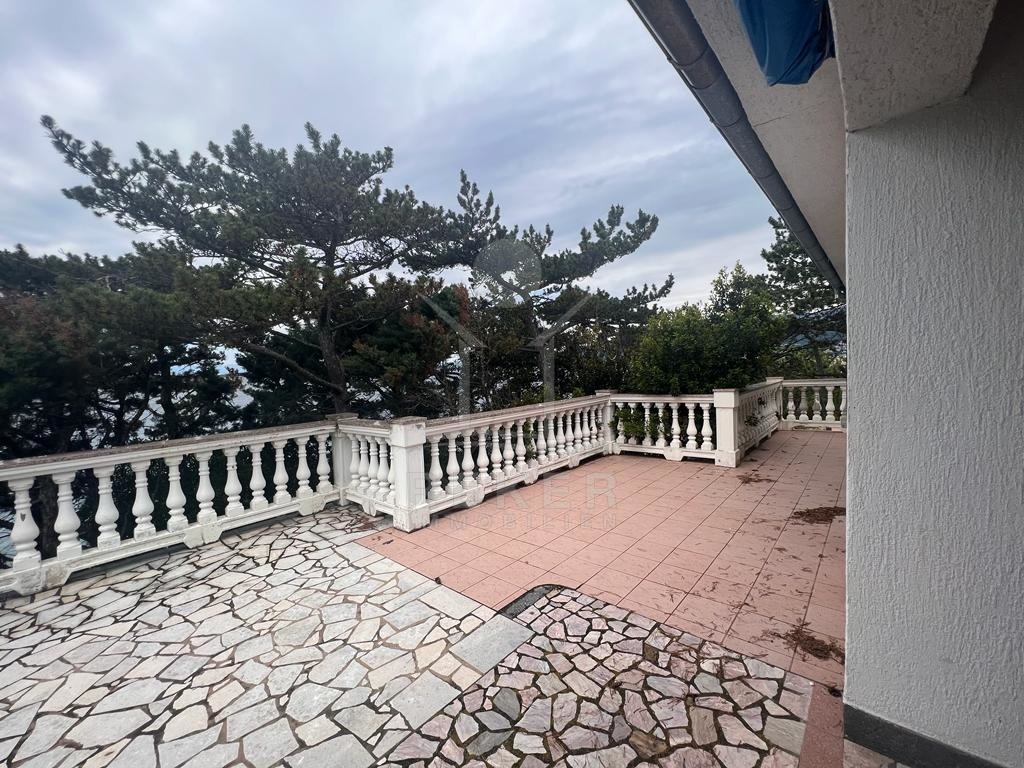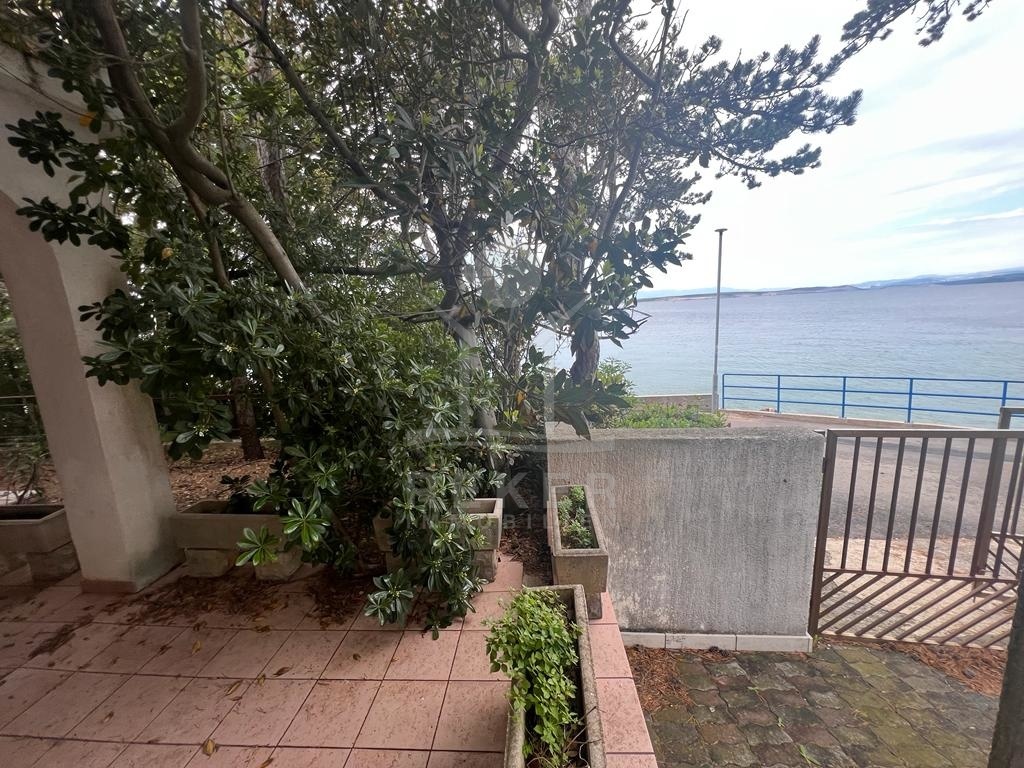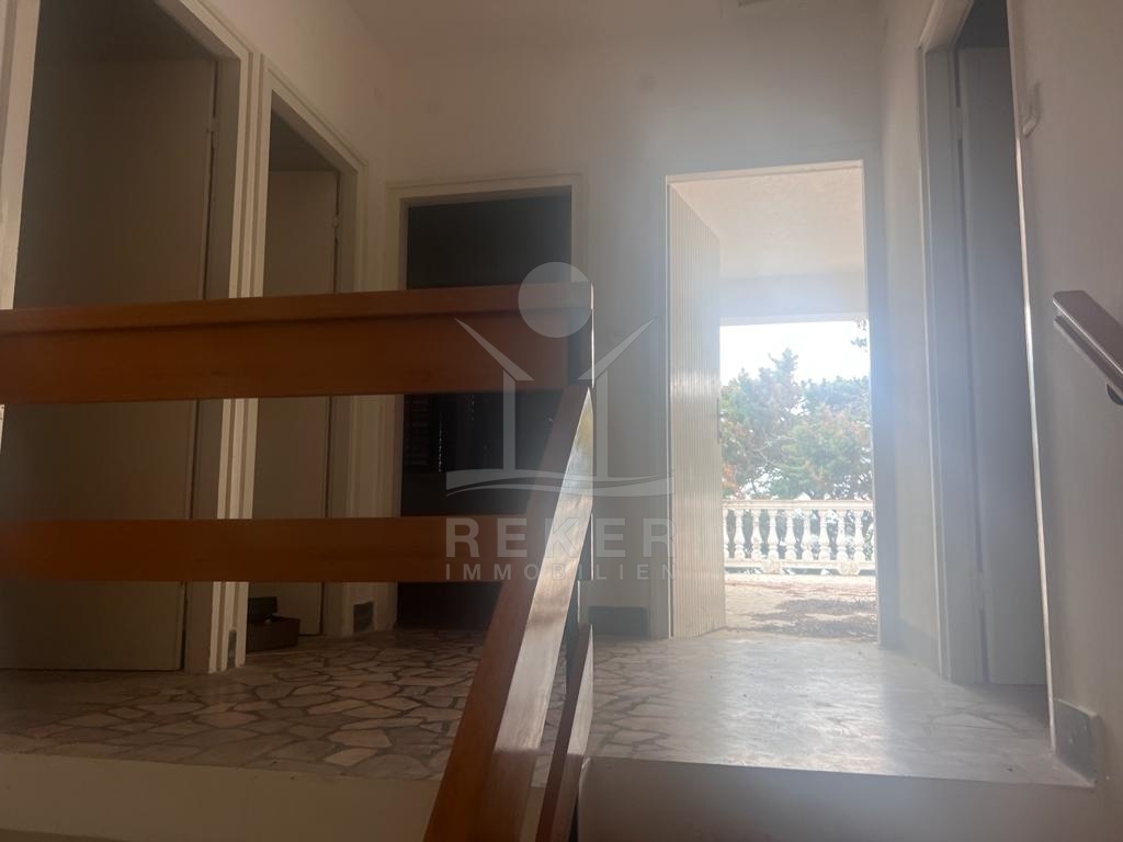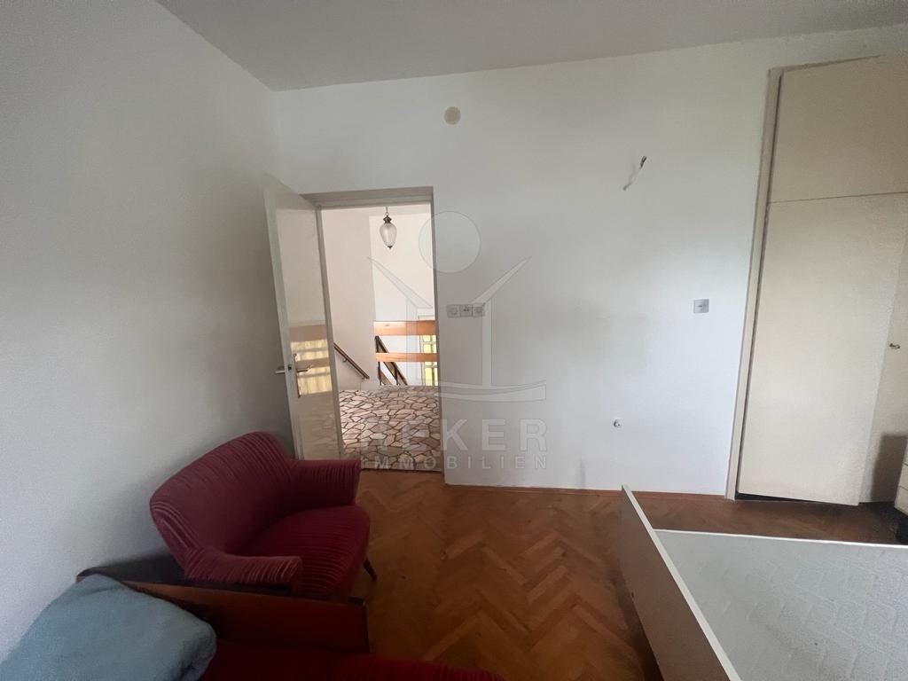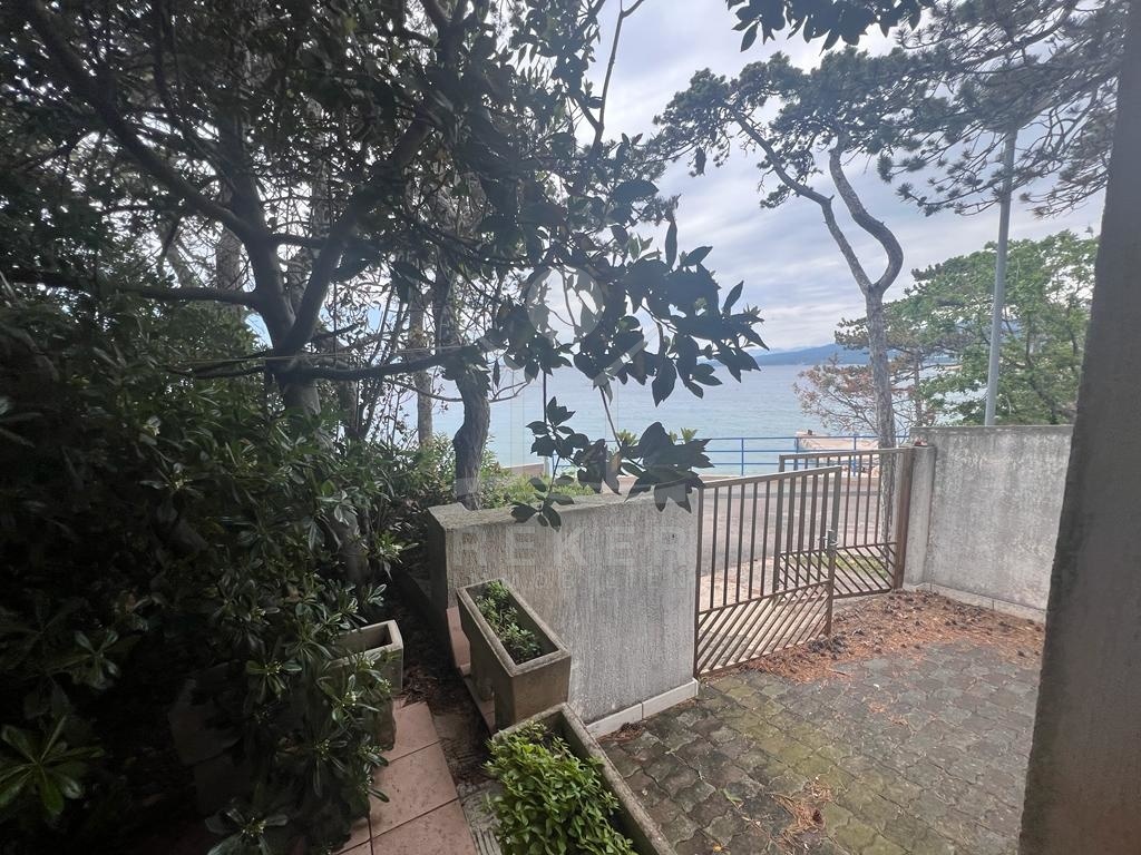 Die zweite Wohnung erwartet Sie mit einer Küche, einem gemütlichen Wohnzimmer, einer Toilette sowie einem geräumigen Bad. Besonders hervorzuheben ist die großzügige, überdachte Terrasse mit atemberaubendem Blick auf das Meer. Im ersten Stock finden Sie zwei weitere Zimmer, ein weiteres Bad und eine Loggia, die mit einem weiteren Ausblick auf das Meer begeistert. Die hintere Terrasse bietet Ihnen einen ruhigen Rückzugsort, von dem aus Sie den Blick auf den Garten mit Pinien genießen können.