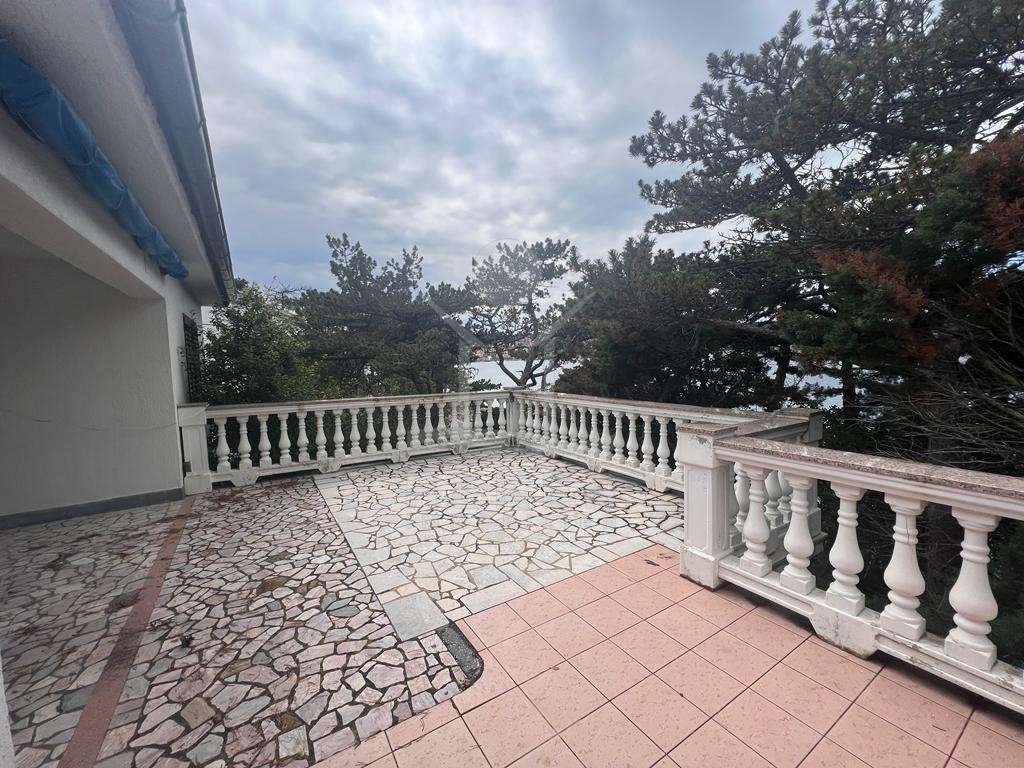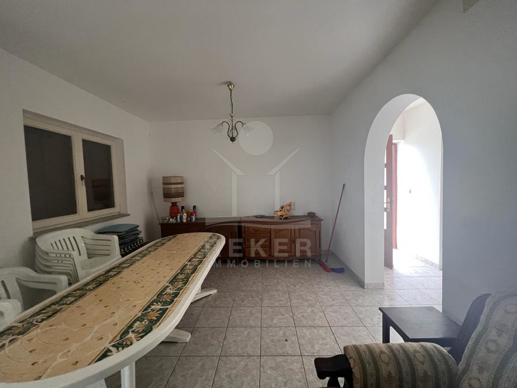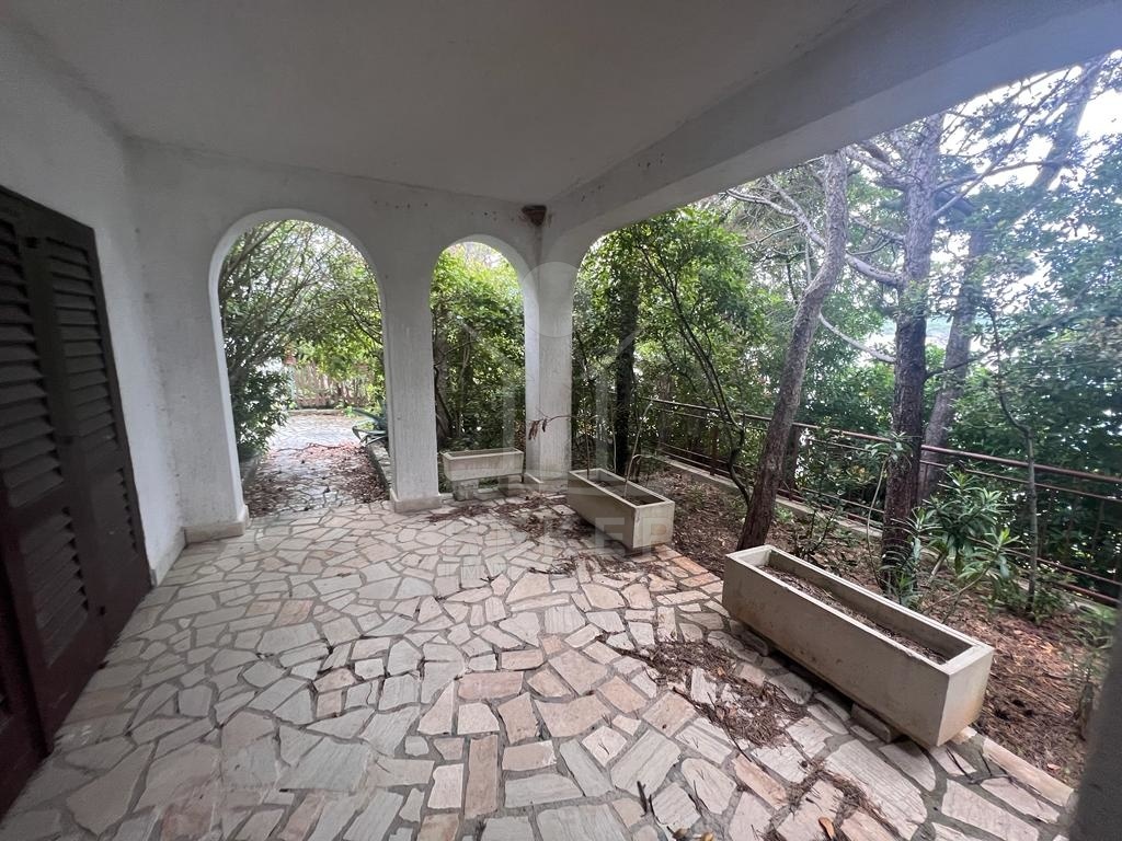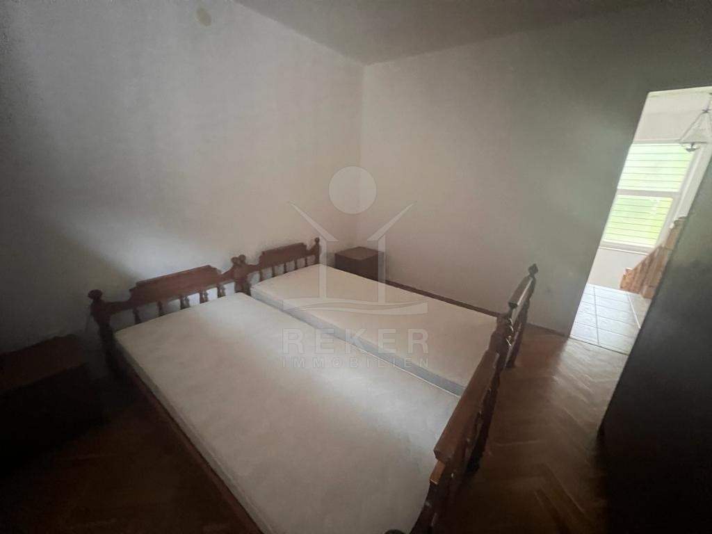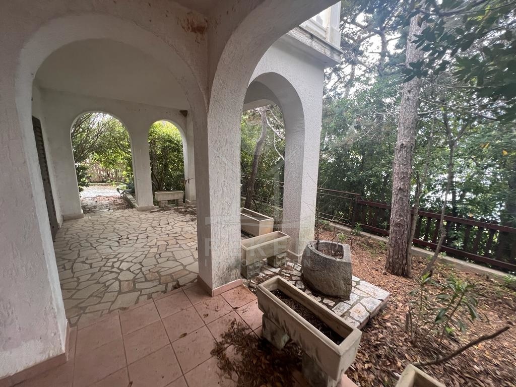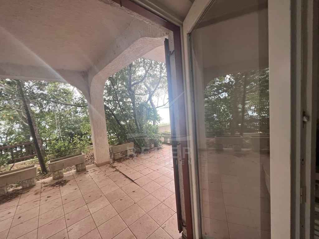 Die zweite Wohnung erwartet Sie mit einer Küche, einem gemütlichen Wohnzimmer, einer Toilette sowie einem geräumigen Bad. Besonders hervorzuheben ist die großzügige, überdachte Terrasse mit atemberaubendem Blick auf das Meer. Im ersten Stock finden Sie zwei weitere Zimmer, ein weiteres Bad und eine Loggia, die mit einem weiteren Ausblick auf das Meer begeistert. Die hintere Terrasse bietet Ihnen einen ruhigen Rückzugsort, von dem aus Sie den Blick auf den Garten mit Pinien genießen können.