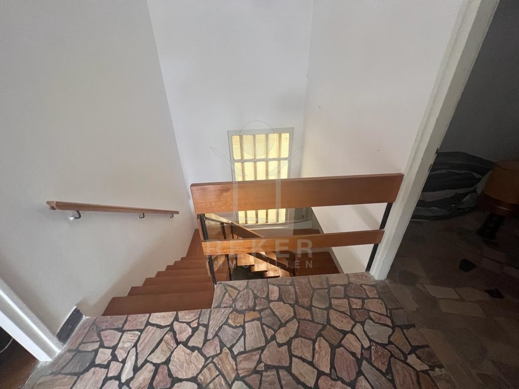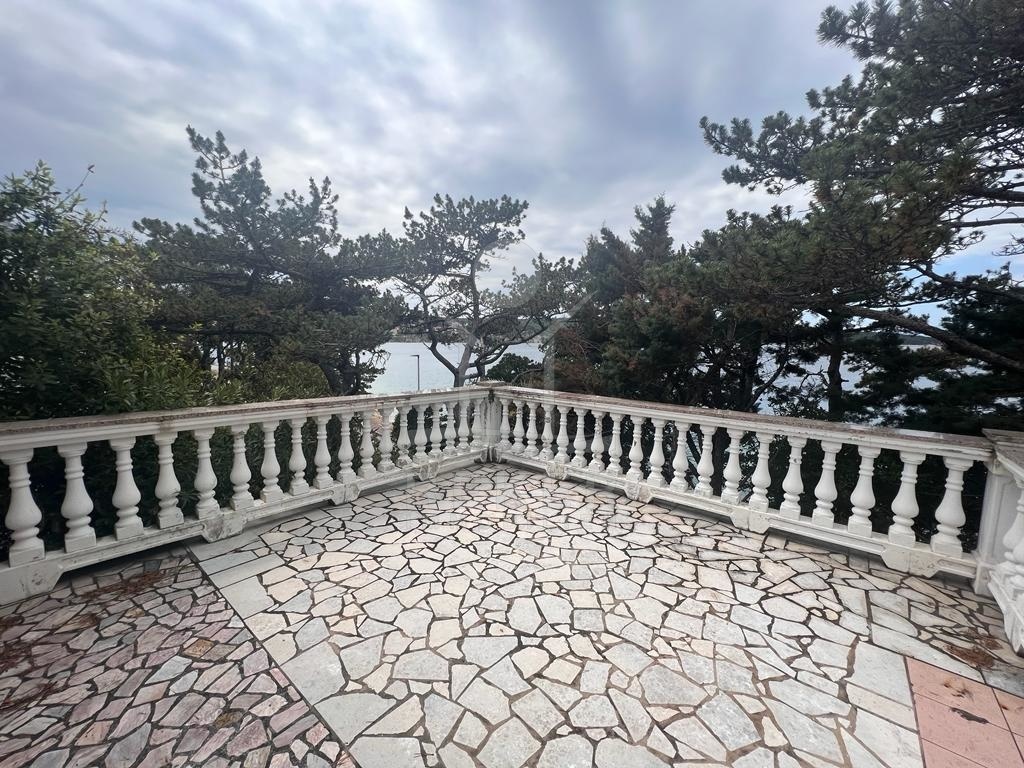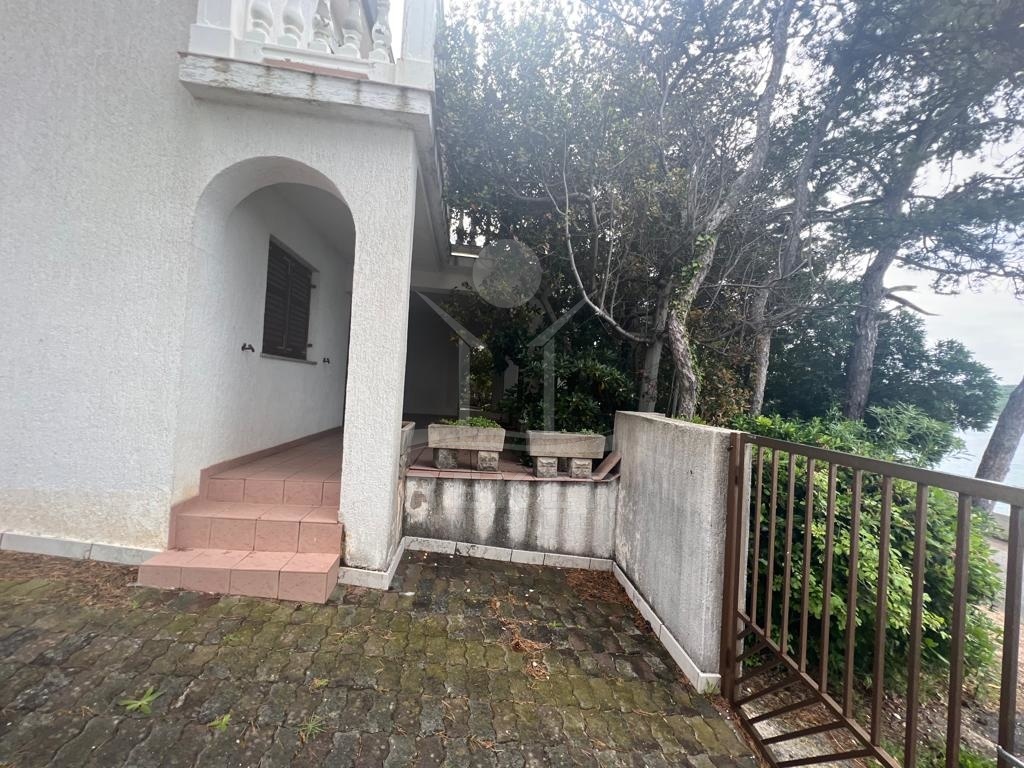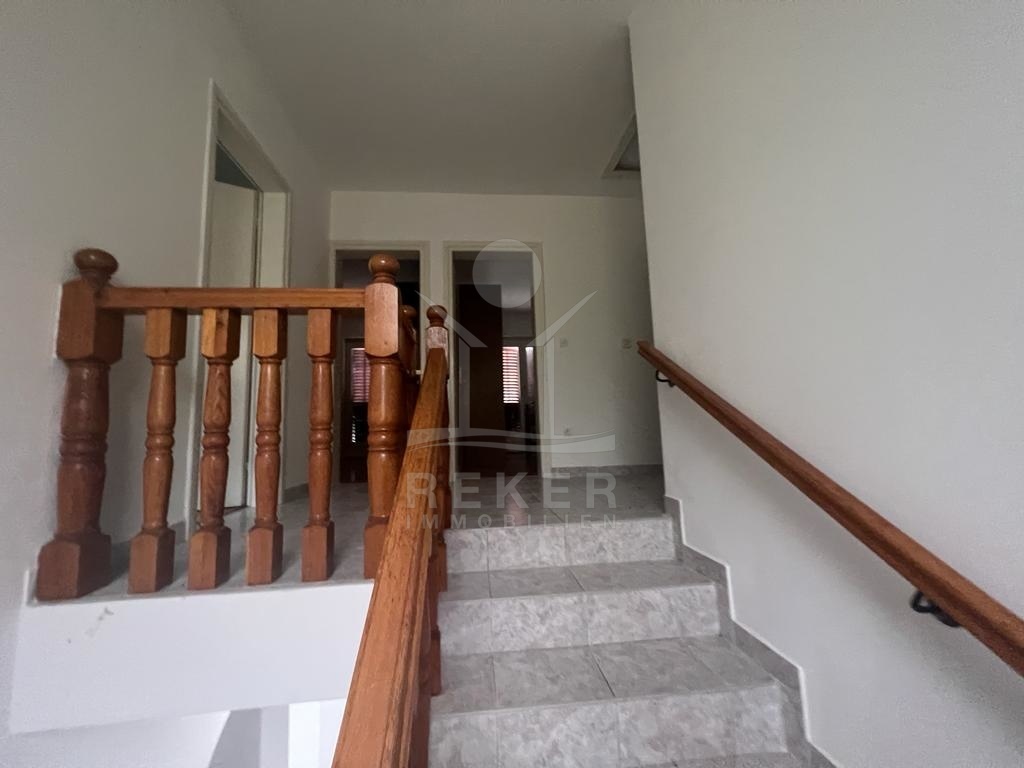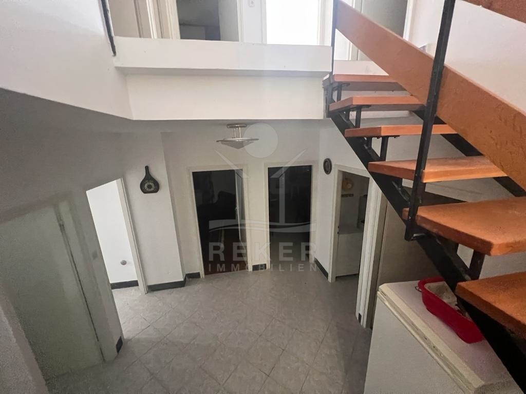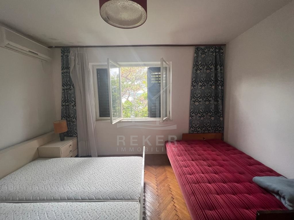 Die zweite Wohnung erwartet Sie mit einer Küche, einem gemütlichen Wohnzimmer, einer Toilette sowie einem geräumigen Bad. Besonders hervorzuheben ist die großzügige, überdachte Terrasse mit atemberaubendem Blick auf das Meer. Im ersten Stock finden Sie zwei weitere Zimmer, ein weiteres Bad und eine Loggia, die mit einem weiteren Ausblick auf das Meer begeistert. Die hintere Terrasse bietet Ihnen einen ruhigen Rückzugsort, von dem aus Sie den Blick auf den Garten mit Pinien genießen können.