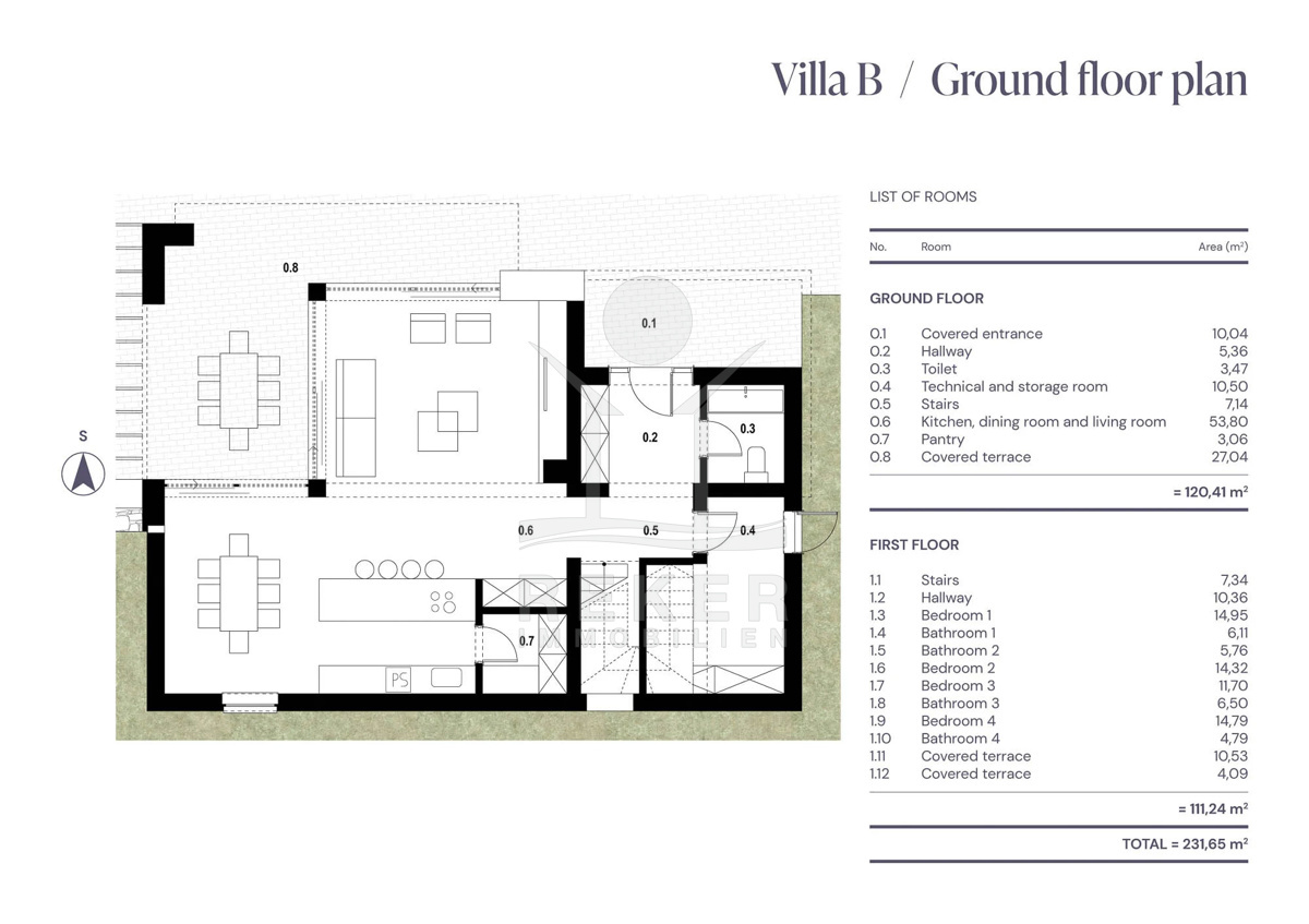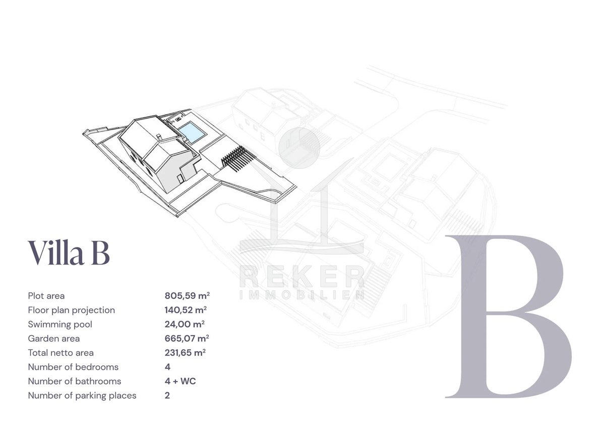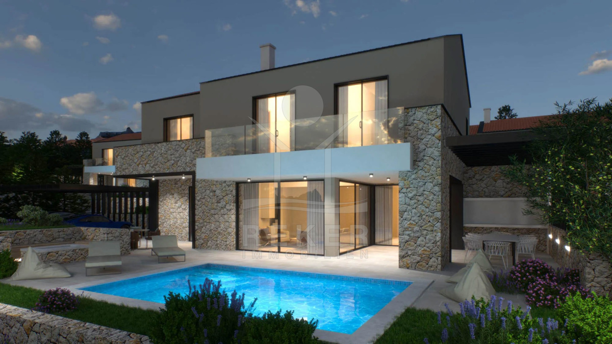 Diese Villa in Šilo auf der Insel Krk liegt nur 100 Meter vom Meer entfernt – ruhig, grün, mit freiem Blick Richtung Wasser. Sie ist Teil eines exklusiven Komplexes aus mediterranen Neubauvillen. Zwei eigene Stellplätze direkt neben dem Haus gehören dazu. Besonders hervorzuheben ist der beheizte Pool. Großzügig angelegt, perfekt für die Badesaison – und darüber hinaus. Dazu kommt ein gepflegter Garten mit mediterraner Bepflanzung, eine überdachte Terrasse und eine Sommerküche mit offenem Feuerplatz. Alles hochwertig ausgeführt, funktional und gleichzeitig stilvoll.