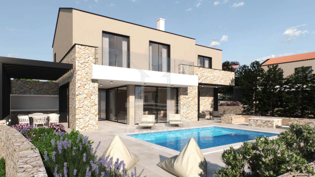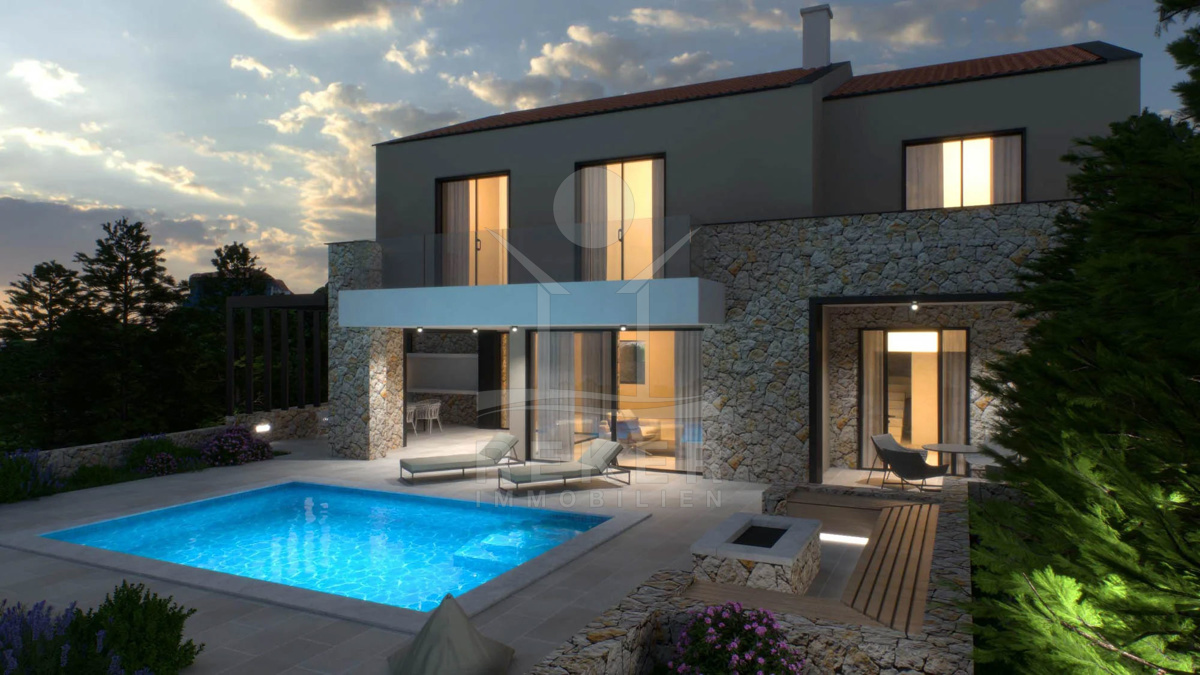 In Šilo, einem kleinen Ort auf der Insel Krk, liegt diese elegante Villa in ruhiger Hanglage direkt am Waldrand. Nur 100 Meter trennen Sie vom nächsten Strand – morgens mit der Kaffeetasse zum Meer, ohne Auto, ohne Aufwand. Die Umgebung: mediterran, entspannt, hochwertig. Der Villenkomplex selbst besteht aus mehreren Einheiten und bildet ein stimmiges Gesamtbild – stilvoll eingebettet in die Natur. Jede Villa verfügt über zwei eigene Stellplätze direkt am Haus.