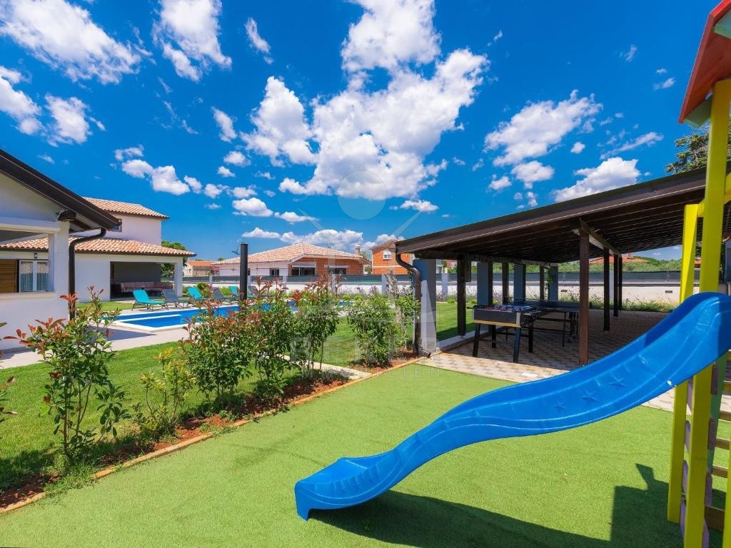 Die moderne Villa befindet sich in idyllischer Lage im charmanten Dorf Šišan in Südistrien, umgeben von unberührter Natur und viel Grün. Hier genießen Sie Ihre Privatsphäre in ländlicher Atmosphäre und können die Ruhe und Gelassenheit des mediterranen Lebensstils voll auskosten. Die Villa ist 1,8 km vom kristallklaren Wasser der Adria entfernt und bietet dennoch vom großen Grundstück einen atemberaubenden Blick auf die nahegelegenen Hügel. Entdecken Sie die vielen Freizeitmöglichkeiten, die diese Gegend zu bieten hat - von Wassersport bis hin zu Radtouren und Wanderungen in der Umgebung. Auch die Innenstadt von Pula mit ihren historischen Sehenswürdigkeiten und ihren vielen Restaurants, Bars und Geschäften ist nur eine kurze Fahrt mit dem Auto entfernt.