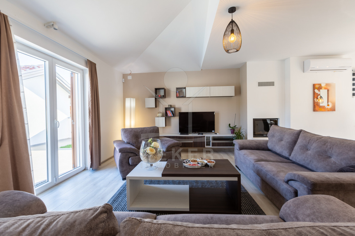 Die beeindruckende Villa ist auf einem 870 m² großen Grundstück platziert und von einem Zaun umgeben. Der Rasen, Lavendel und mediterrane Pflanzen sorgen für eine ruhige und entspannte Atmosphäre. Das Haus verfügt über zwei Etagen mit einer Wohnfläche von 141 m² und wurde im Jahr 2019 erbaut, sodass es nahezu neuwertig ist. Der überdachte Privatparkplatz bietet Platz für 3 Autos und sorgt somit für zusätzliche Sicherheit und Komfort.