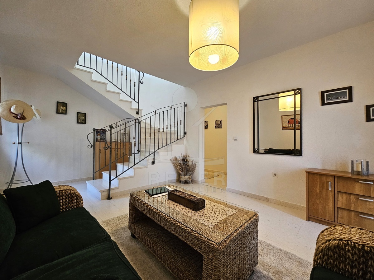 Die Villa wird möbliert verkauft, mit Ausnahme persönlicher Gegenstände. Im Erdgeschoss erwartet Sie ein herrschaftlicher Wohnbereich mit 3 großzügigen Schlafzimmern und 2 modernen Badezimmern. Jedes Schlafzimmer bietet außergewöhnliche Privatsphäre und Komfort. Der Zugang zum gepflegten Garten mit Grillplatz bietet eine ideale Kulisse für Familientreffen und Freizeitaktivitäten im Freien.