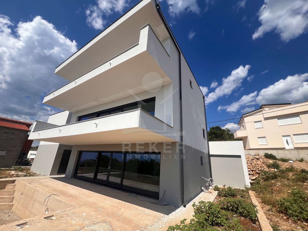 Der Neubau bietet auf drei Etagen insgesamt 223 m² Wohnfläche und verfügt über alles, was das Herz begehrt. Hier lässt es sich wunderbar entspannen, denn die Villa bietet eine herrliche Meerblick-Terrasse und zwei weitere Balkone, von wo aus man einen atemberaubenden Blick auf das Meer genießen kann.