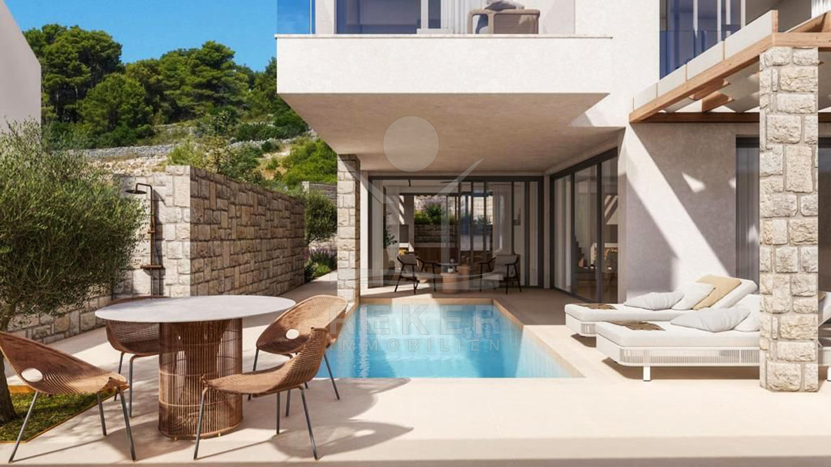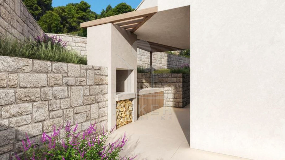Die exklusive Neubauvilla befindet sich in einer fantastischen Lage auf der idyllischen Insel Solta, nur 200 Meter vom glitzernden Meer entfernt. Umgeben von unberührter Natur und einer atemberaubenden Landschaft, die zum Entspannen und Baden einlädt, bietet dieses Anwesen die perfekte Auszeit vom Alltag. Das malerische Ortszentrum ist nur 500 Meter entfernt und bietet vielfältige Möglichkeiten zur Erkundung der lokalen Kultur und Gastronomie; hier erwarten Sie gemütliche Konoben und Restaurants, in denen Sie die köstliche dalmatinische Küche genießen können.