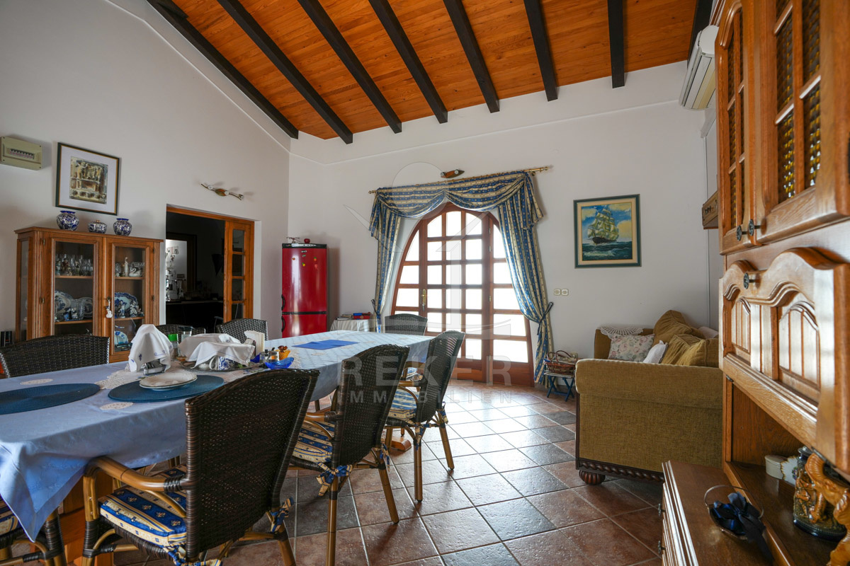 Die Villa erstreckt sich auf einem großzügigen Grundstück von 1.294 m², das genügend Raum für mögliche Umbauten oder Erweiterungen bietet. Das Anwesen ist teilweise von einer Steinmauer umgeben und mediterran gestaltet, mit einheimischen Bäumen und Pflanzen, was eine idyllische und private Atmosphäre schafft. Mit einer Wohnfläche von 380 m² über 2 Etagen, erfuhr das Gebäude seine letzte Anpassung im Jahr 2000 und bietet daher reichlich Platz für individuelle Gestaltungswünsche. Das Anwesen verfügt über einen geräumigen Parkplatz am Eingang, der Platz für mehr als 4 Autos bietet, sowie eine frei stehende Garage mit ca. 50 m². Mit der Option, die Garage aufzuwerten, kann zusätzlicher Wohnraum geschaffen werden. Die Villa verspricht nicht nur Luxus und Komfort, sondern auch die Möglichkeit, sie den persönlichen Bedürfnissen anzupassen und zu erweitern. Ein wahres Juwel für anspruchsvolle Käufer, die Individualität und Potenzial schätzen.