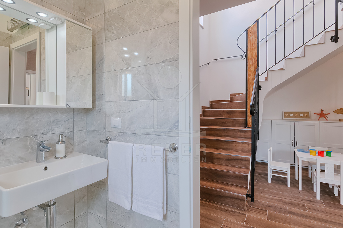 Das Anwesen liegt nur wenige Minuten vom Strand entfernt haben Sie direkten Zugang zum klaren Meer der Adria. Die Villa ist ideal gelegen, mit Einkaufsmöglichkeiten nur 200 Meter entfernt und ein gutes Restaurant erreichen Sie fußläufig in der Nähe. Die Umgebung bietet vielfältige Freizeitaktivitäten wie Tauchen, Wandern und Radfahren, um die Schönheit der Region zu entdecken. Die Nähe zu historischen Sehenswürdigkeiten wie dem Forum in Pula (3,2 km) und dem Museum für Olivenöl bietet kulturelle Einblicke in die Geschichte der Gegend. Genießen Sie das mediterrane Klima und die malerische Umgebung von Stinjan in dieser modernen Villa.