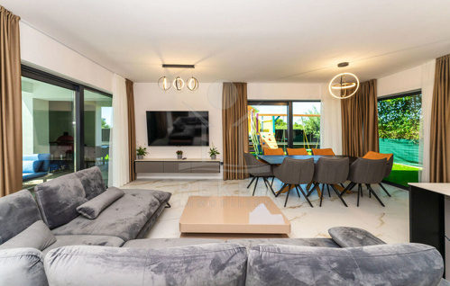 Das Anwese erstreckt sich über 3 Etagen und bietet eine Wohnfläche von 300 m², errichtet im Jahr 2023. Die hochmoderne Ausstattung umfasst Aluminiumfenster mit 3-fach verglastem Glas und Fensterläden. Die Villa verfügt über Inverter-Klimaanlagen, eine elektrische Fußbodenheizung, Wärmepumpen, Videoüberwachung und eine Alarmanlage für höchste Sicherheit. Genießen Sie die Privatsphäre auf dem 640 m² großen, umzäunten Grundstück und entspannen Sie in Ruhe und Luxus.