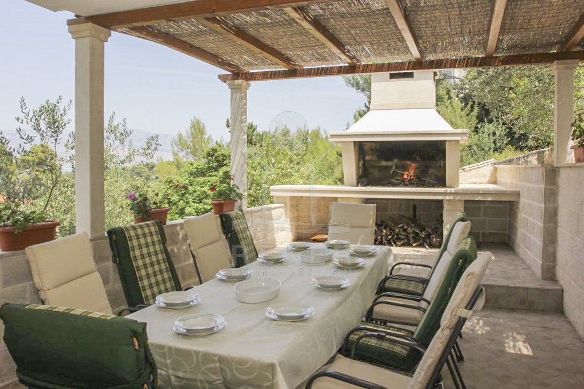 Die Villa befindet sich in einer ruhigen und hervorragenden Lage in Supetar, nur 200 Meter vom kristallklaren Meer entfernt. Umgeben von viel Grün und Bäumen, bietet die Lage der Immobilie eine natürliche und idyllische Atmosphäre. Das nahegelegene Meer lädt zu erholsamen Tagen am Strand ein, wo Sie die Sonne genießen und im erfrischenden Wasser schwimmen können. Die ruhige Umgebung sorgt für Privatsphäre und Ruhe, ideal für entspannte Ferien oder dauerhaftes Wohnen. Gleichzeitig befinden Sie sich in der Nähe des Zentrums von Supetar, wo Sie eine Vielzahl an Restaurants, Cafés und Geschäften finden. Hier können Sie das mediterrane Flair genießen und die lokale Küche entdecken. Eine ideale Lage, um das Beste aus der kroatischen Inselwelt zu genießen.