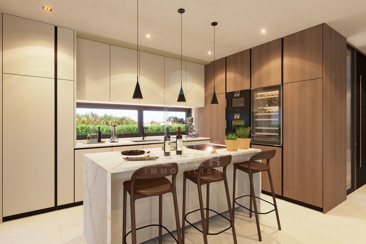 Das Anwesen von Poreč erstreckt sich über ein ausgedehntes Grundstück von 1.200 m², das mit automatischer Bewässerung für einen makellos gepflegten Garten ausgestattet wird. Das 2-stöckige Gebäude mit 250 m² Wohnfläche ist ein Neubau aus dem Jahr 2024 und bietet erstklassige Ausstattungsmerkmale wie eine Alarmanlage, Videoüberwachung, Wärmepumpe, elektrische Jalousien, Eichenparkett und erstklassige Fliesen in den Bädern. Die Aluminiumschreinerei verleiht dem Haus einen modernen und eleganten Touch.