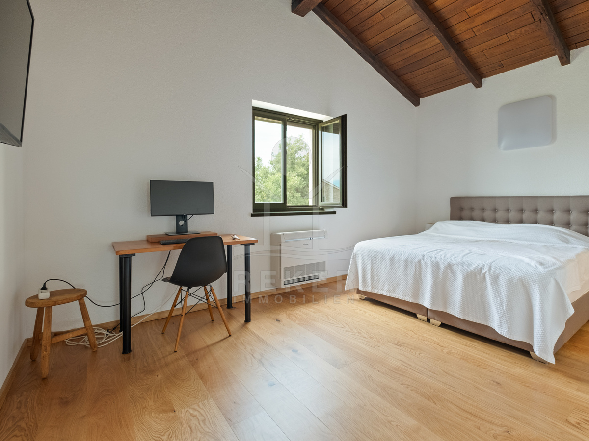 Das charmante Steinhaus befindet sich in einer schönen landschaftlichen Umgebung in der Nähe von Svetvinčenat, nur eine kurze Autofahrt von den beliebten Küstenorten wie Rovinj und Pula entfernt. Svetvinčenat selbst besticht durch seinen malerischen Hauptplatz, umgeben von historischen Gebäuden und Kirchen, und ist bekannt für seine kulturellen Veranstaltungen, die das ganze Jahr über stattfinden. Die ruhige und idyllische Lage des Steinhauses am Rande der Bauzone ermöglicht Ihnen, die natürliche Schönheit Istriens zu genießen und sich vom Trubel des Alltags zu erholen. Die vielen Wander- und Radwege in der Umgebung laden dazu ein, die herrliche grüne Landschaft der Region zu erkunden. In den Konobas und Restaurants von Svetvinčenat können Sie die köstliche Küche Zentralistriens probieren und den Abend bei einem Glas istrischem Wein ausklingen lassen. Ein idealer Ort für einen entspannten Urlaub inmitten der Natur!