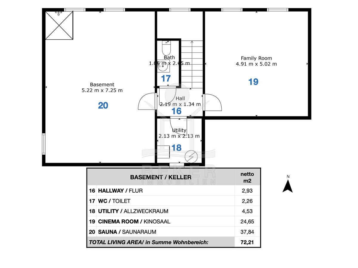 Eine interne Treppe führt Sie in das Untergeschoss, wo ein geräumiger Flur, ein großer Aufenthaltsraum mit einem Fernseher für Spaß und Unterhaltung sorgt. Ein WC und eine Dusche stehen ebenfalls zur Verfügung für maximalen Komfort.