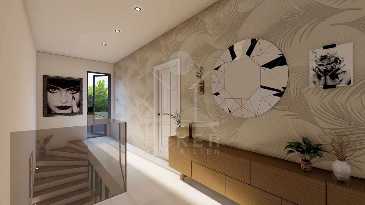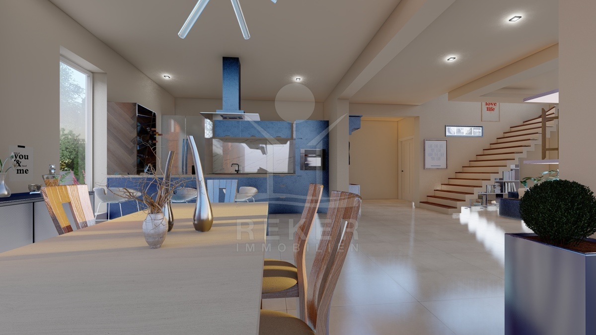 Ein geplanter Pool, der selbst ausgehoben werden muss, ermöglicht Ihnen und Ihren Liebsten harmonische Stunden in bester Gesellschaft. Das Erdgeschoss bietet ein Schlafzimmer, ein Badezimmer, einen großzügigen Wohnbereich und eine offene Küche mit Essplatz, während im Obergeschoss 3 weitere Schlafzimmer mit jeweils eigenem Bad zu finden sind.