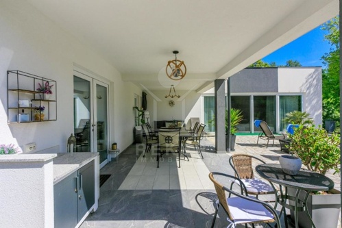 Die überdachte Terrasse ist die Attraktion dieser Villa, mit einer Fläche, die ausreichend Platz für eine Gruppe von Freunden oder eine Familie bietet. Hier können Sie lange Abende verbringen, die von einem Steingrill und einem mediterranen Flair begleitet werden, während Sie auf den umliegenden Hügeln die letzten Sonnenstrahlen genießen. Wunderschöne Sonnenliegen stehen ebenfalls zur Verfügung, damit Sie die Sonne genießen und sonnenbaden können. Diese wunderschöne Villa hat alles, was man sich für das perfekte, mediterrane Leben wünscht!