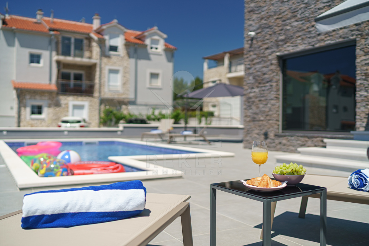 LUXUSVILLA MIT POOL, SAUNA, GARTEN UND MEERBLICK ZUM ERSTBEZUG