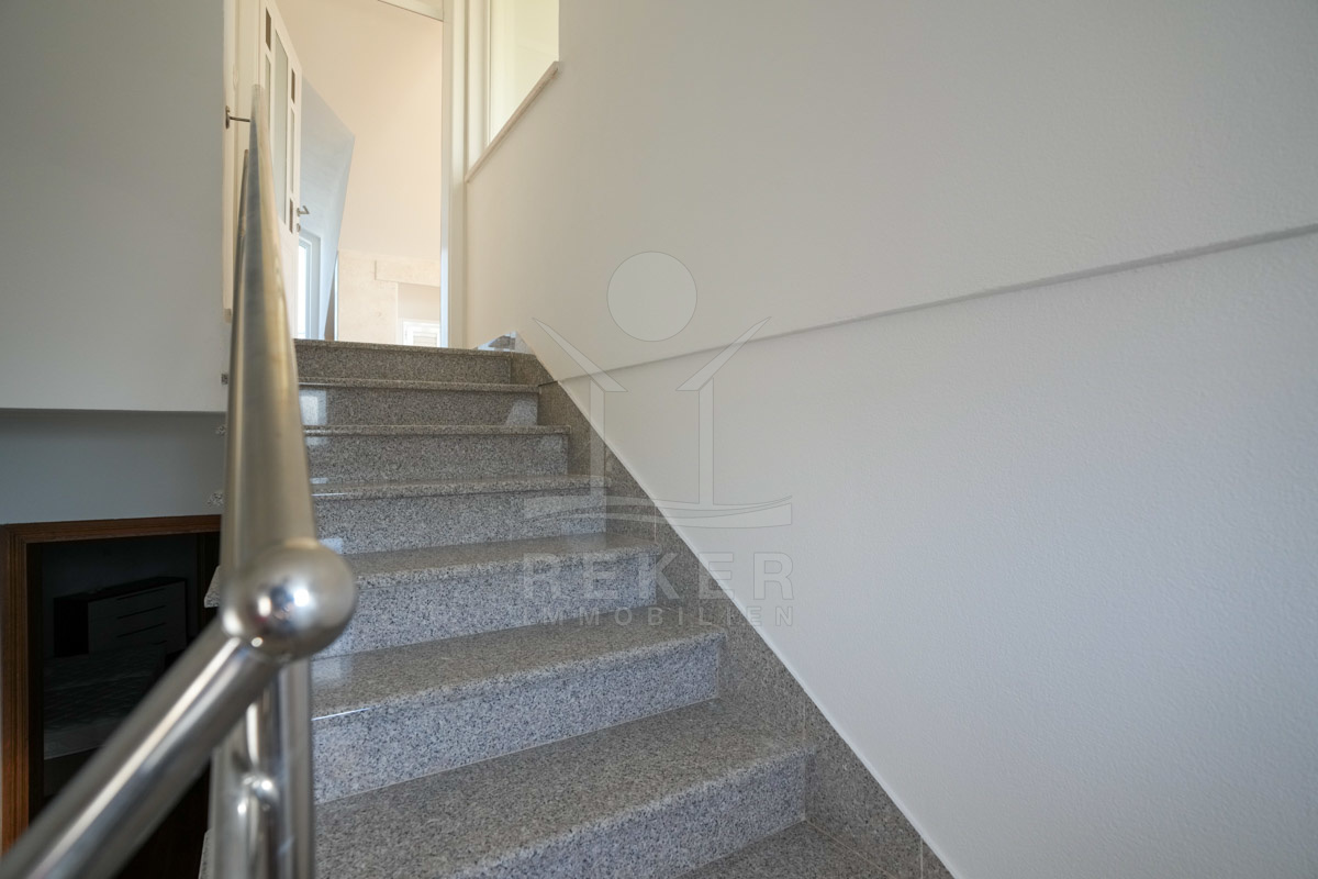 Das Obergeschoss umfasst zwei geschmackvoll eingerichtete Schlafzimmer und ein Badezimmer. Der ca. 7 m² große Balkon lädt dazu ein, die frische Luft zu genießen und die Aussicht zu bewundern.ch ist perfekt für gesellige Abende. Zusätzlich bietet Ihnen ein modernes Bad sowie eine wunderschöne Loggia mit atemberaubendem Meerblick das ultimative Gefühl von Luxus und Freiheit.