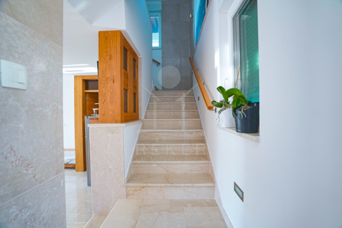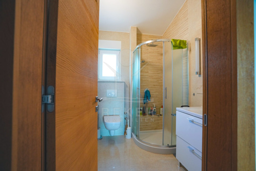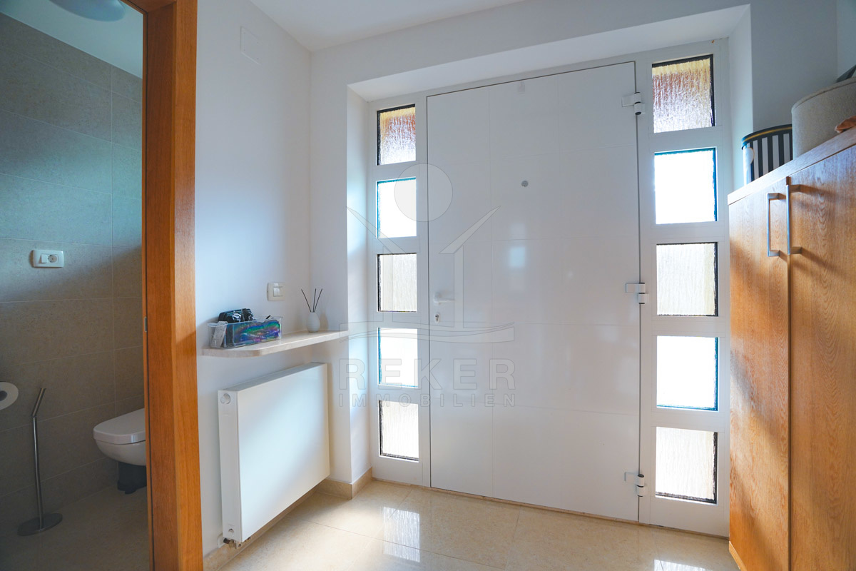 Über eine interne Treppe erreichen Sie das Obergeschoss mit 60 m². Hier befinden sich ein Flur, drei geräumige Schlafzimmer und ein weiteres Badezimmer. Die letzte Anpassung erfolgte im Jahr 2015. Zur Ausstattung gehören Fußbodenheizung in Küche und Wohnzimmer, eine Klimaanlage sowie eine Ölzentralheizung.