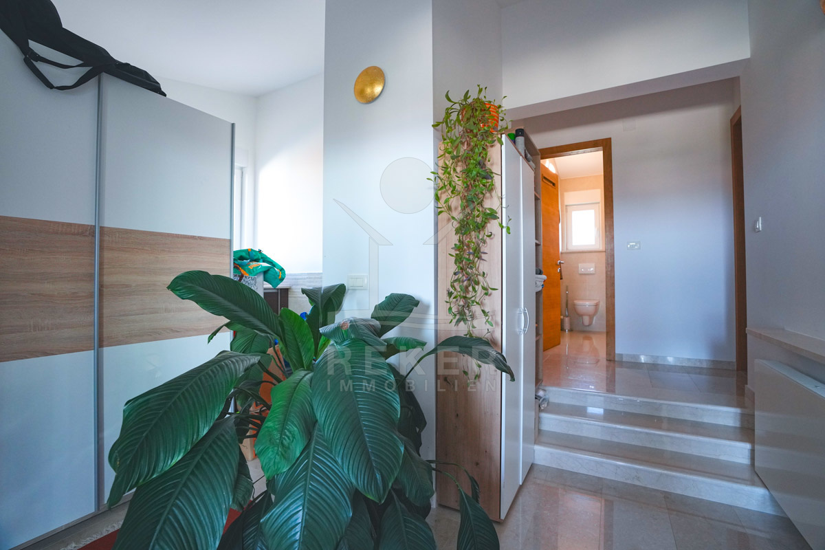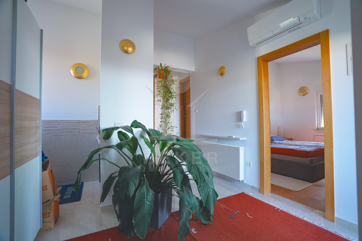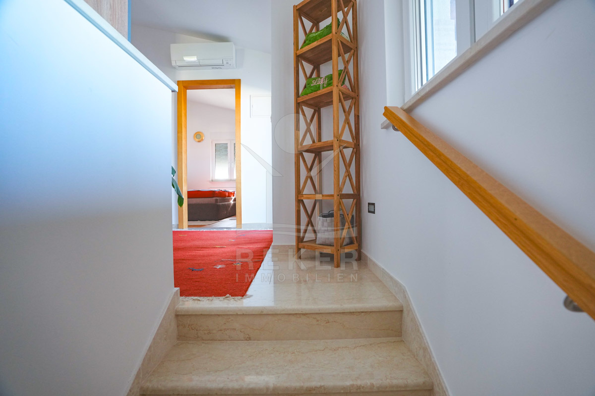 Diese möblierte Villa in Tribunj richtet sich an Käufer, die Ruhe schätzen und kurze Wege im Alltag wünschen. Das Meer, der Strand Bristak und das Zentrum sind jeweils nur etwa 600 m entfernt. Supermärkte und Restaurants erreichen Sie damit bequem. Die Umgebung wirkt angenehm und ruhig.