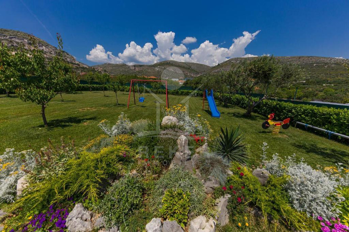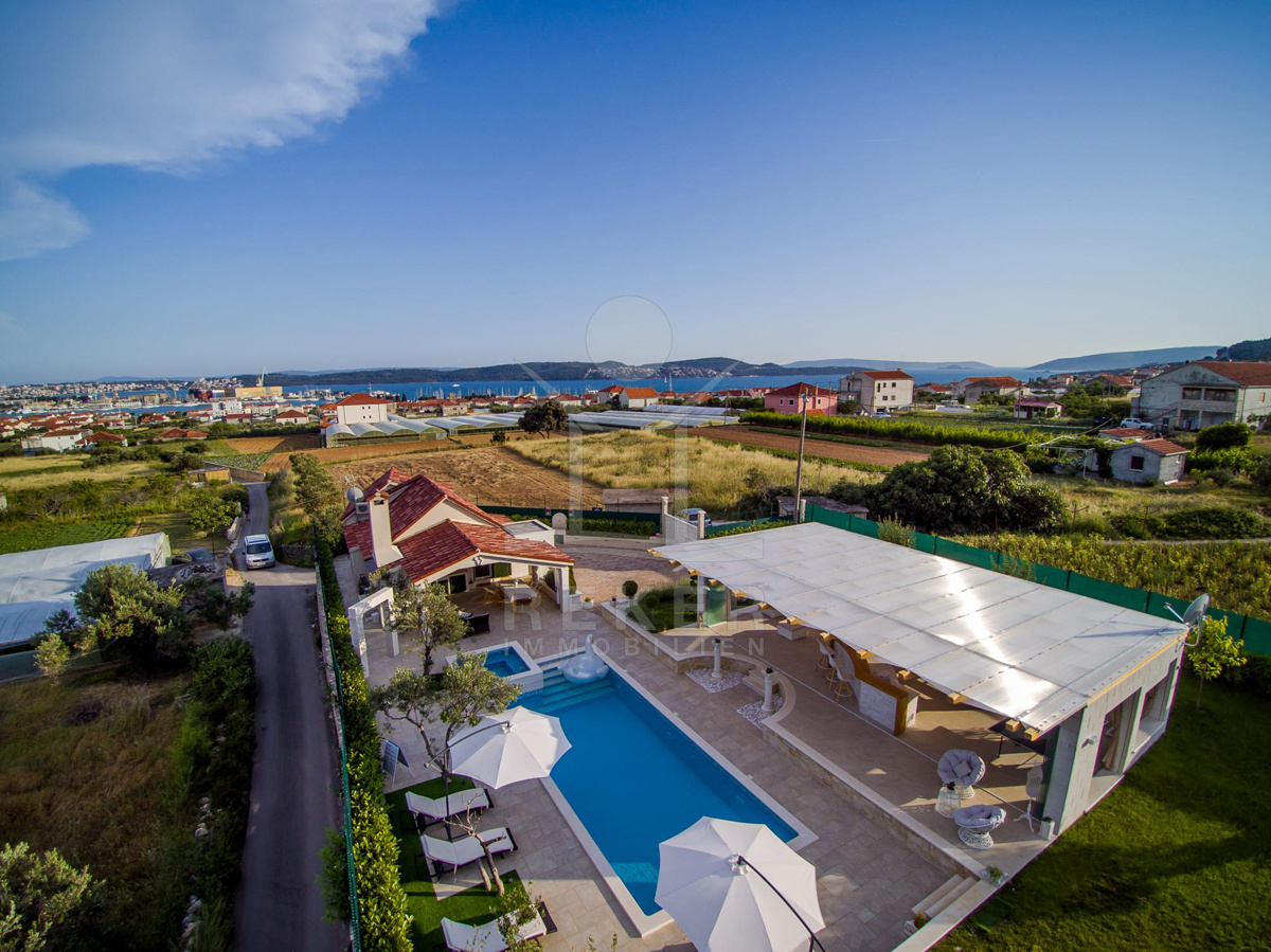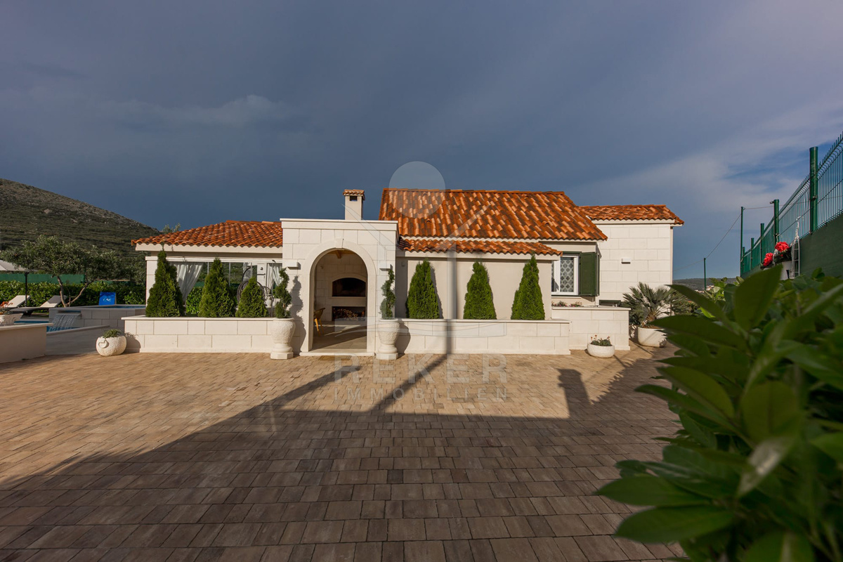 In Seget Donji, nur wenige Autominuten von Trogir entfernt, erwartet Sie dieses charmante Anwesen auf einem großzügigen Grundstück. Umgeben von Feldern, ruhig gelegen und mit nur wenigen Nachbarn – ideal, wenn Sie Privatsphäre suchen. Der Meerblick reicht weit bis zu den vorgelagerten Inseln, während im Rücken die Berge eine eindrucksvolle Kulisse bilden. Das Grundstück ist vollständig eingefriedet, das Auto parken Sie bequem auf dem eigenen Hof. Trotz der ruhigen Umgebung erreichen Sie das Ortszentrum in wenigen Minuten.