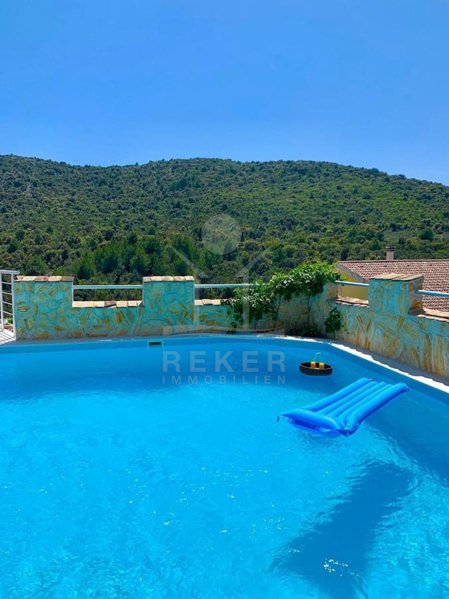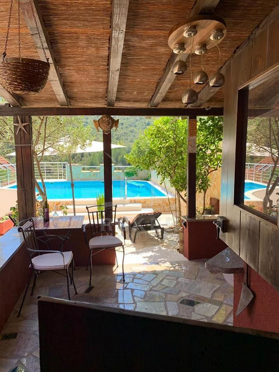 Draußen genießen Sie mediterranes Leben pur: Im gepflegten Garten wartet ein großer Pool auf Sie. Gleich daneben: eine überdachte Sommerküche mit Grillplatz und Toilette – perfekt für gesellige Abende mit Familie oder Gästen. Der Außenbereich ist nicht nur schön, sondern auch praktisch. Ob zum Sonnenbaden, Lesen im Schatten oder einfach nur zum Entspannen – hier passt alles zusammen.