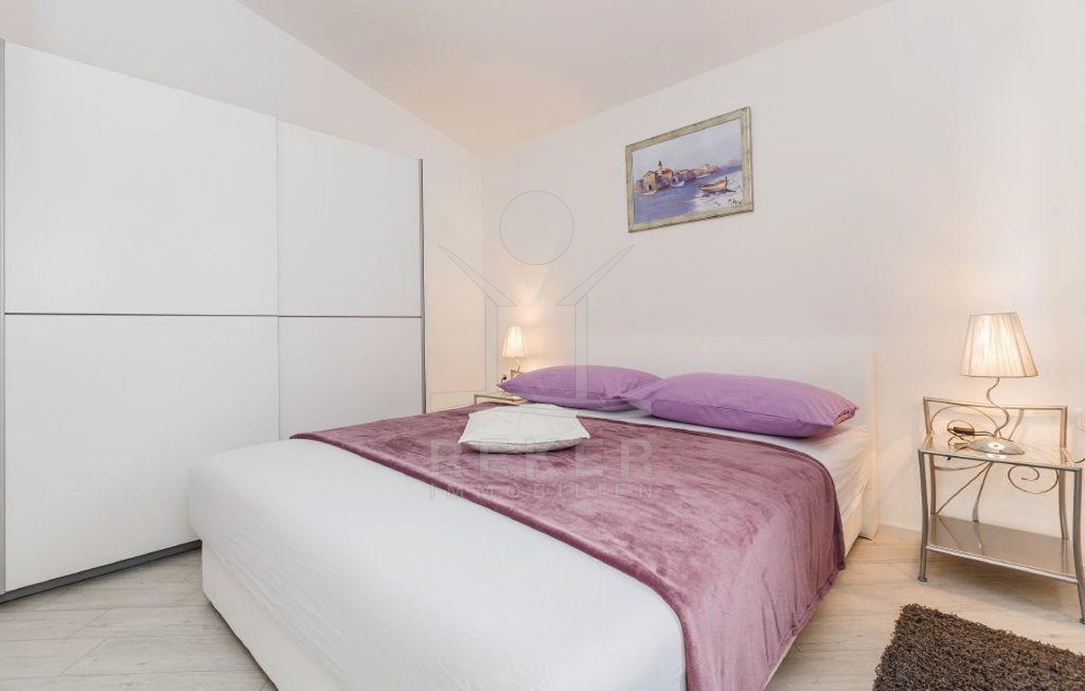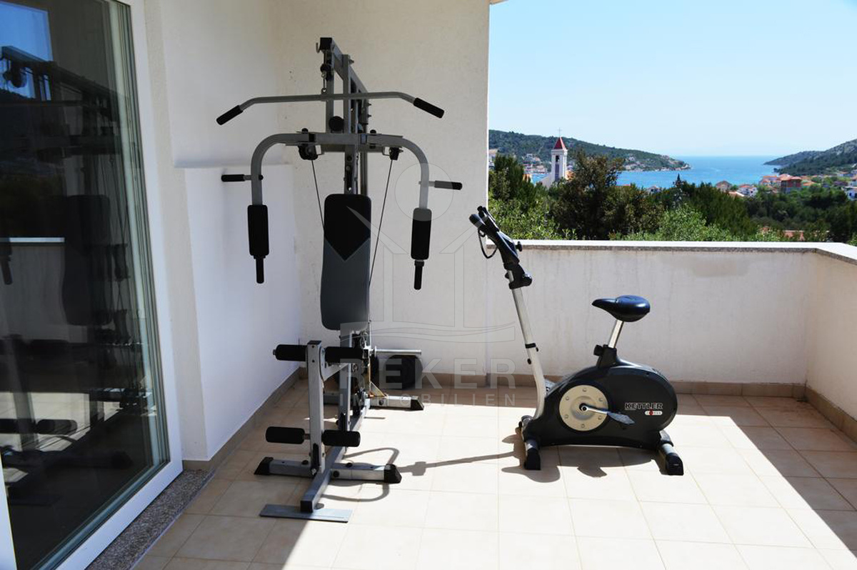 Nur wenige Schritte zum Meer. Und doch angenehm ruhig. Diese Villa liegt in einem kleinen Ort, nicht weit von Trogir. Hier wohnen Sie zurückgezogen – und mit Weitblick. Denn von der oberen Etage aus blicken Sie weit über das Meer und die Dächer der Stadt. Der Ort ist mit dem Auto gut erreichbar. Alles, was Sie für den Alltag brauchen, ist schnell zur Hand. Ideal, wenn Sie ein dauerhaftes Zuhause suchen – oder eine hochwertige Basis für die Ferienvermietung.
