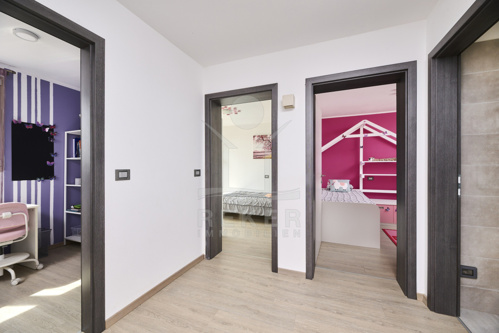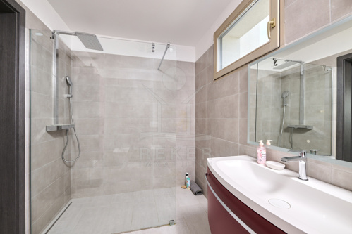Im 45 m² großen Keller steht ein Raum mit Bad und Dusche zur Verfügung, perfekt für Gäste, Fitness oder Hobby. Das Dachgeschoss bietet 100 m² Ausbaureserve mit vorbereiteten Anschlüssen für Strom, Heizung und Sanitär. Zwei Velux- und zwei Rundfenster bringen Licht und Weitblick, eines davon mit Blick auf die Adria.