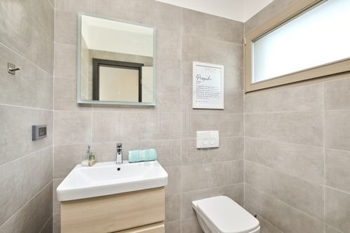 Die Villa wurde 2021 erbaut, mit klarem Fokus auf Energieeffizienz und Komfort. Eine Luft-Wasser-Wärmepumpe versorgt die Fußbodenheizung, Wandgeräte sorgen für gleichmäßiges Klima. Ein Pelletofen im Wohnzimmer schafft zusätzliche Wärme und Atmosphäre. Holz-Aluminium-Fenster mit Sicherheitsschlössern, vollständige Dämmung und ein Kalkfiltersystem runden die Ausstattung ab.
